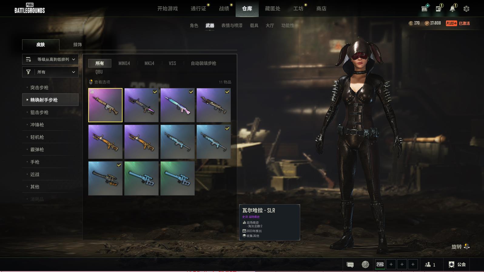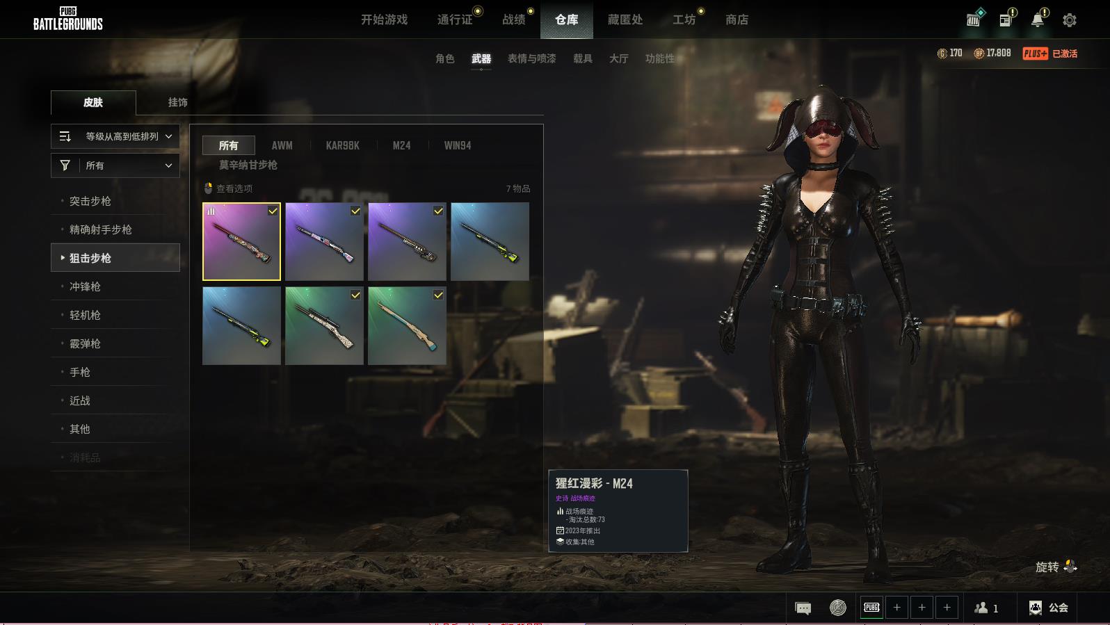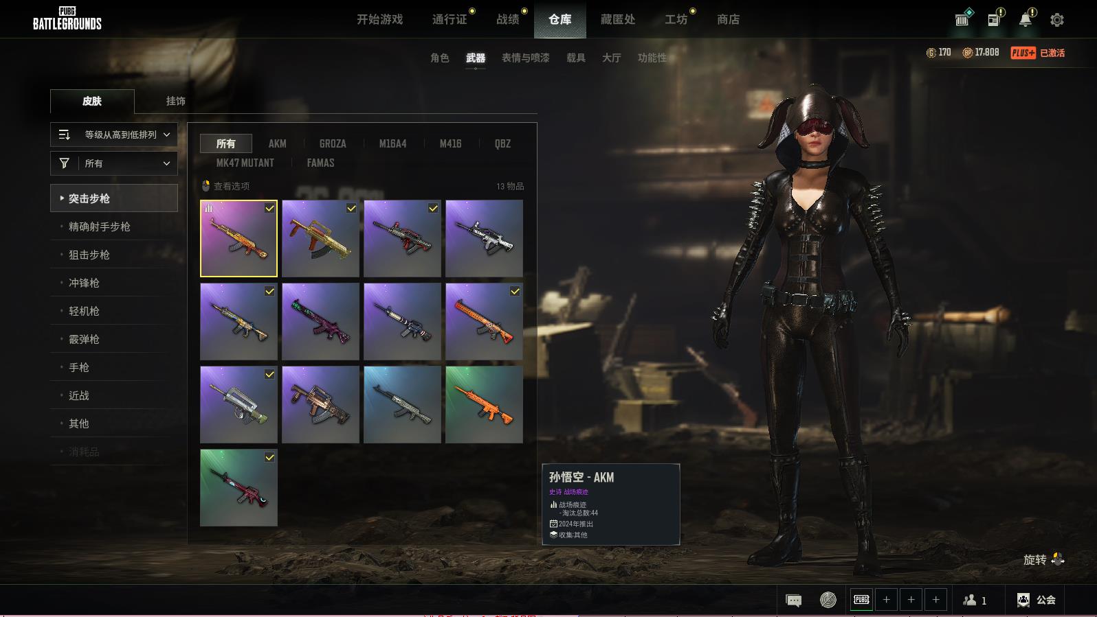 PUBG豪华版绝地求生可排位,孙悟空-AKM;瓦尔哈拉-SLR;猩红漫彩-M24;镀金-GROZA;鎏金王朝-087;分形几何-0BZ;PGC2021群雄逐鹿-