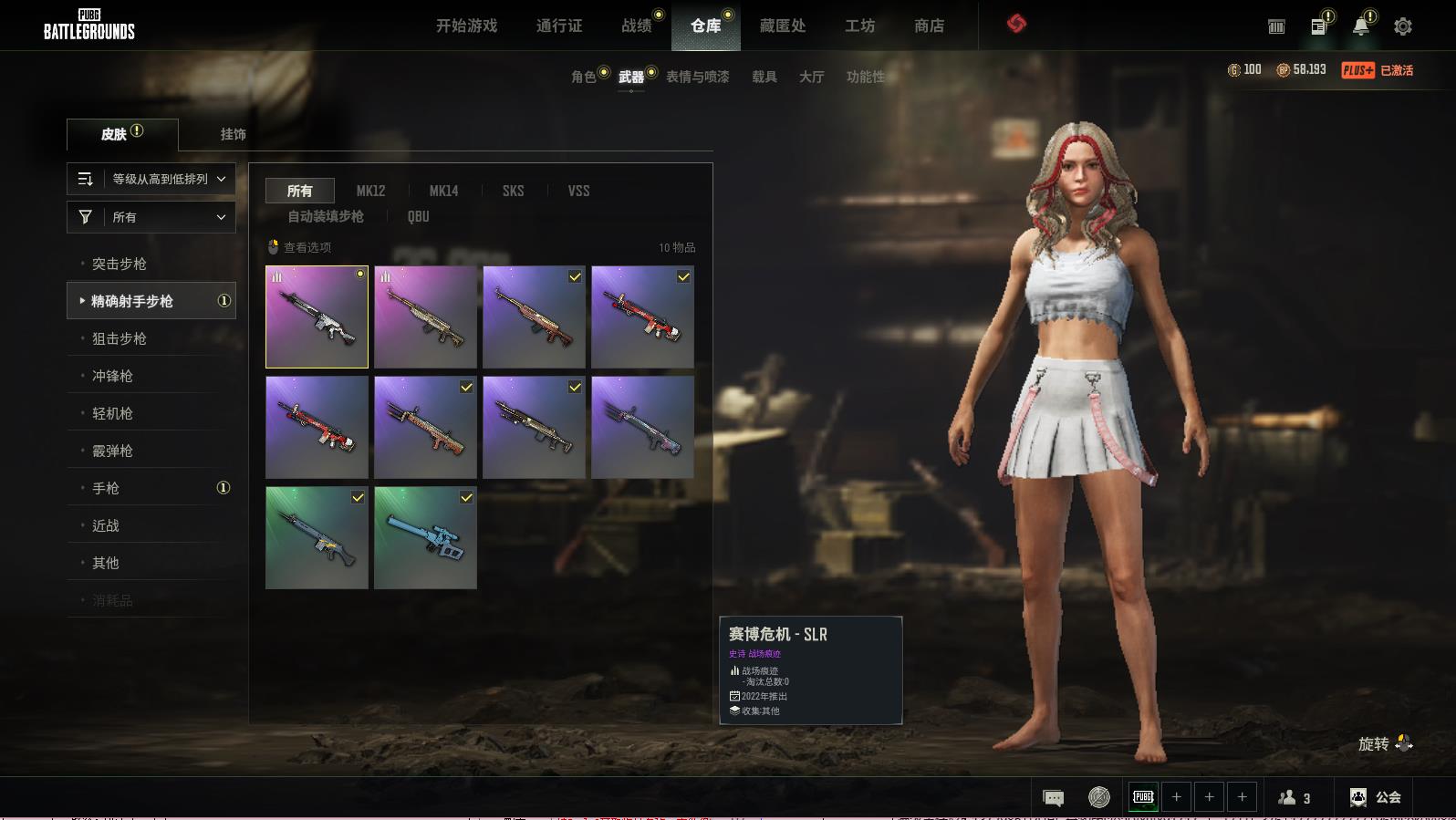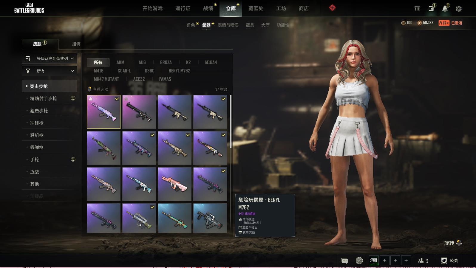 PUBG豪华版可排位,随机2-4级生存等级,危险玩偶屋-BERYLM762;不朽游行-MK47MUTANT;赛博危机-SLR;蒸汽计量表-SKS;疯狂收割者-M