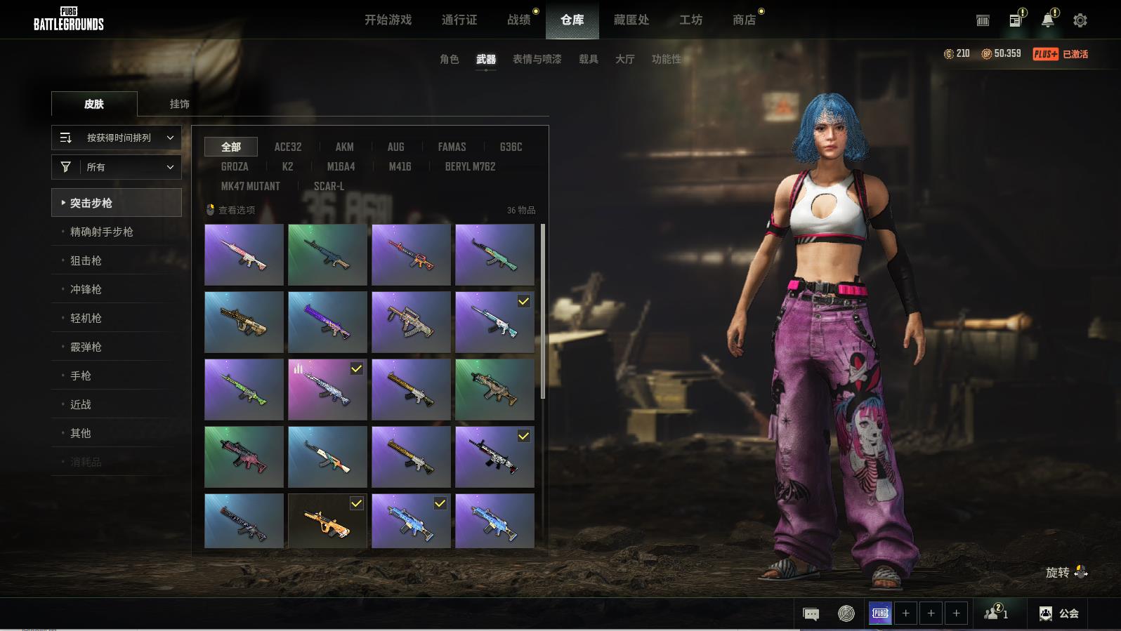 PUBG豪华版steam绝地求生,可排位,彩糖蛋糕-M416;银河卫士-M16M;金色落叶-AKM;山花烂漫:GPOZA;大理石宝藏-ACE32;天拘来世-K2;金色落叶-MK47MUTANT;三重彩-SCAR-L;蔚蓝魔法爆裂考-G36C;糖果碗-ACF32;大理石宝藏-SLP;金色落叶-SKS;幽灵之握-MK12;希腊怪物:DBU;赛季31章技黄金-MK14;无拘来世-莫辛纳甘步枪;数码丛林迷彩-AWM;赛季30章技黄金-AWM;鎏金王朝-KAR98K战场痕迹;沙悟净-P