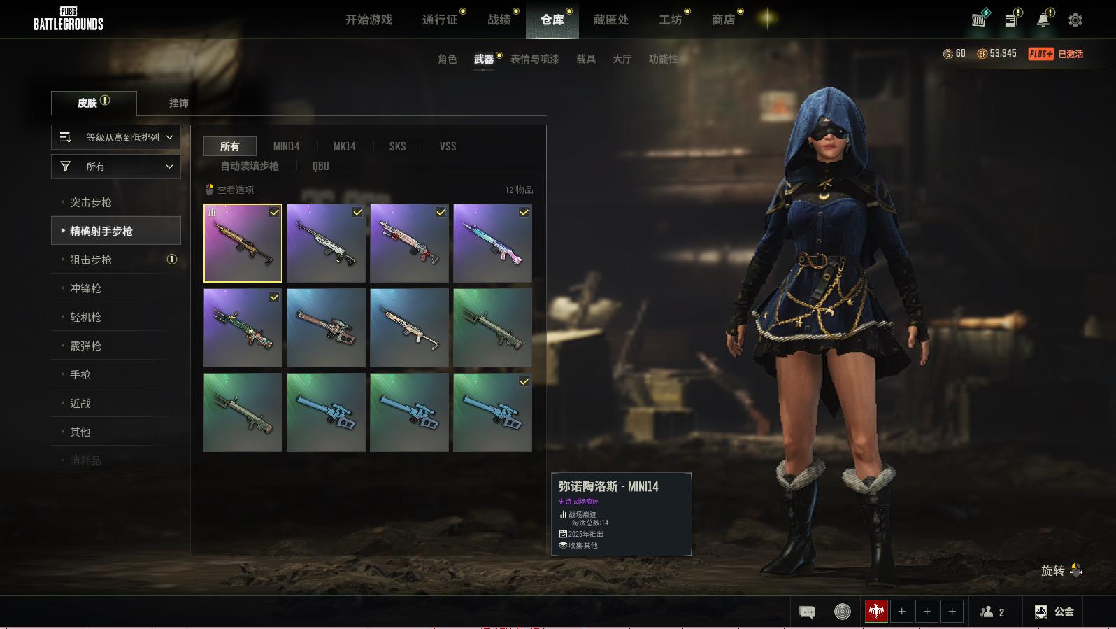 PUBG豪华版绝地求生可排位,瓦尔哈拉-ACE32;三重彩-SCAR-L;淬火真金-K2;金王朝-REPVLM762;金王朝-087;意速之道-AKM;山花烂漫