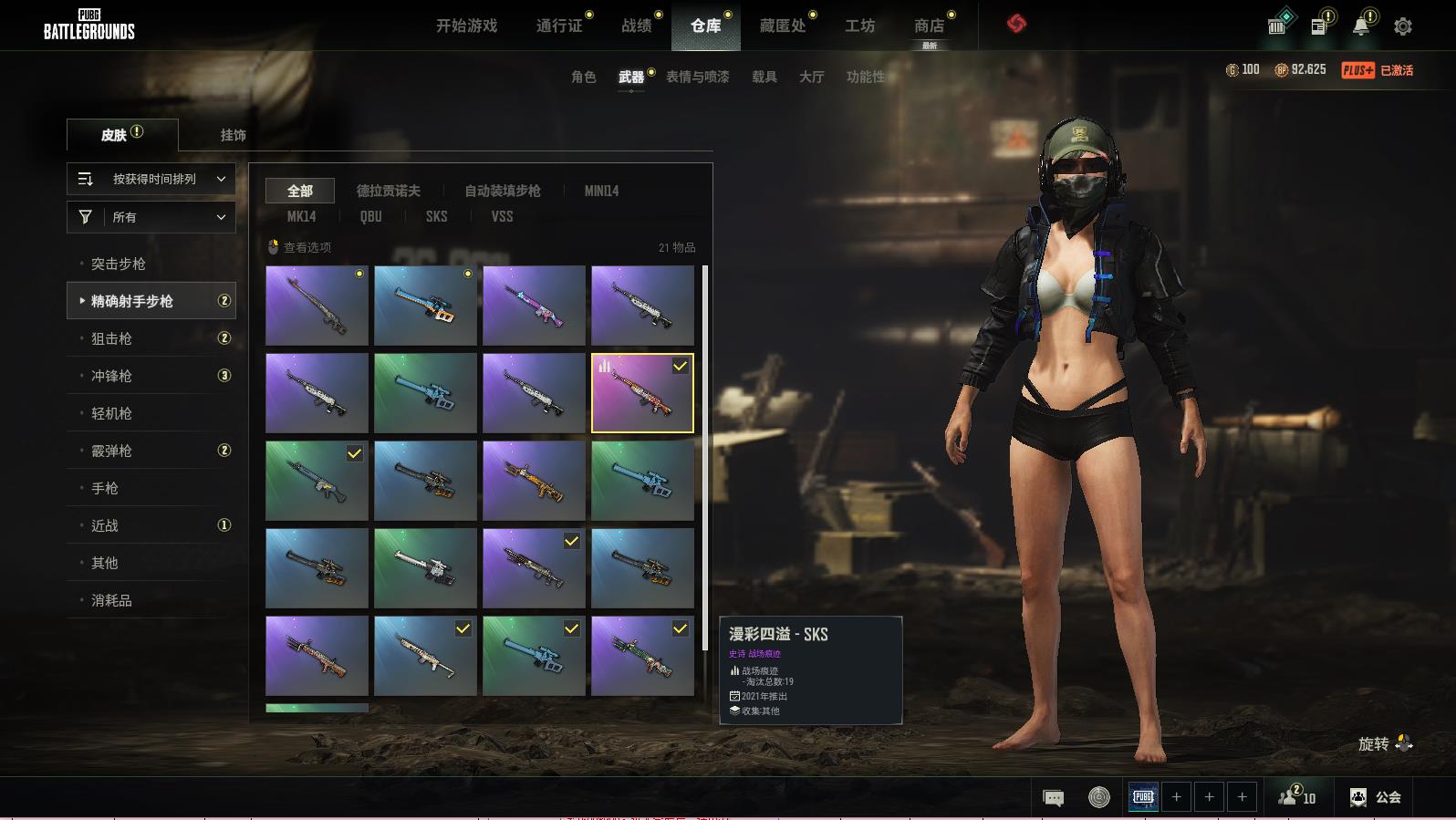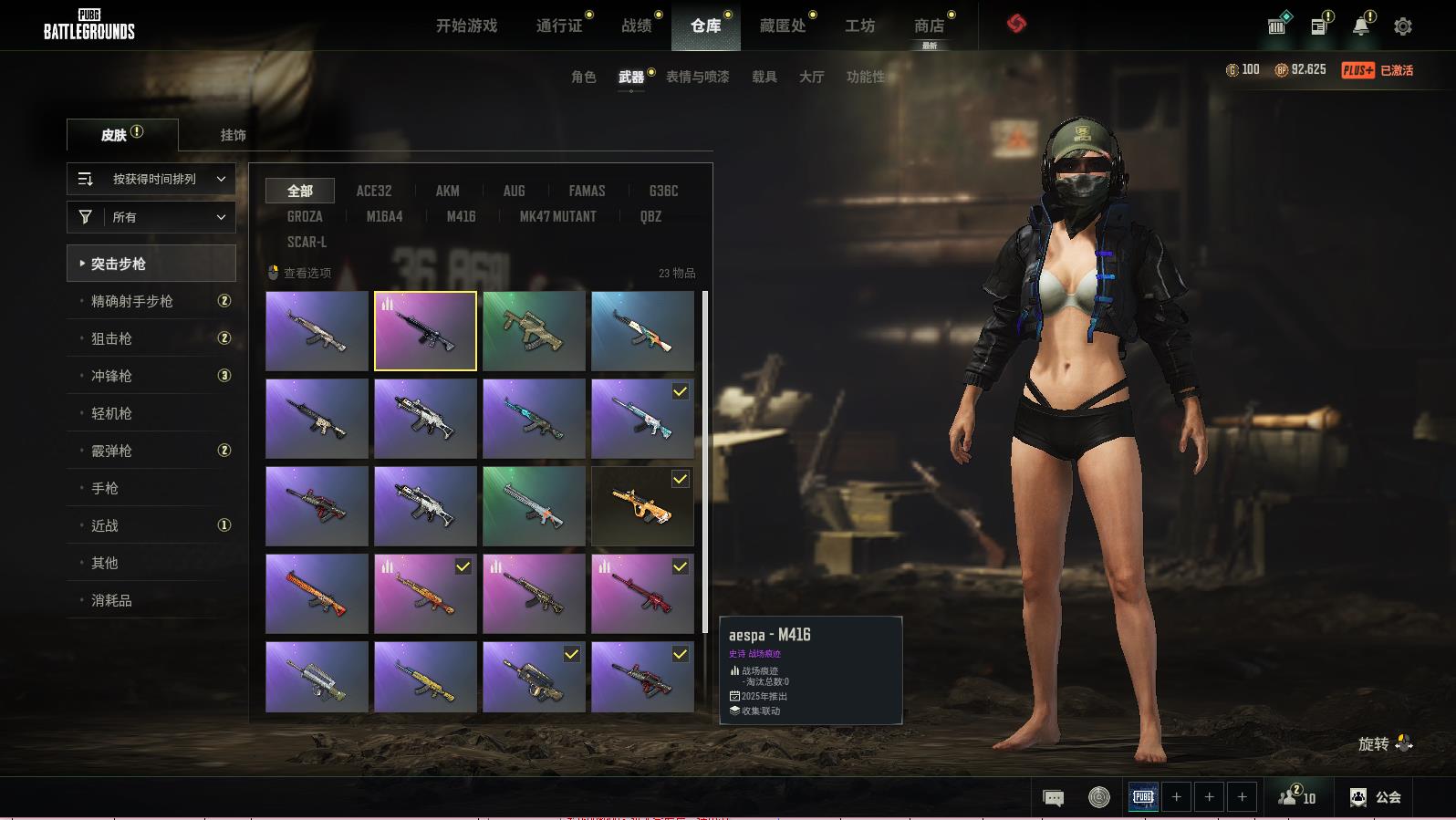 PUBG豪华版满级生存可排位,aespa-M416;孙悟空-AKM;瓦尔哈拉-ACE32;猩红时刻-M16A4;漫彩四溢-SKS;一击撕裂者-S1897;金色续