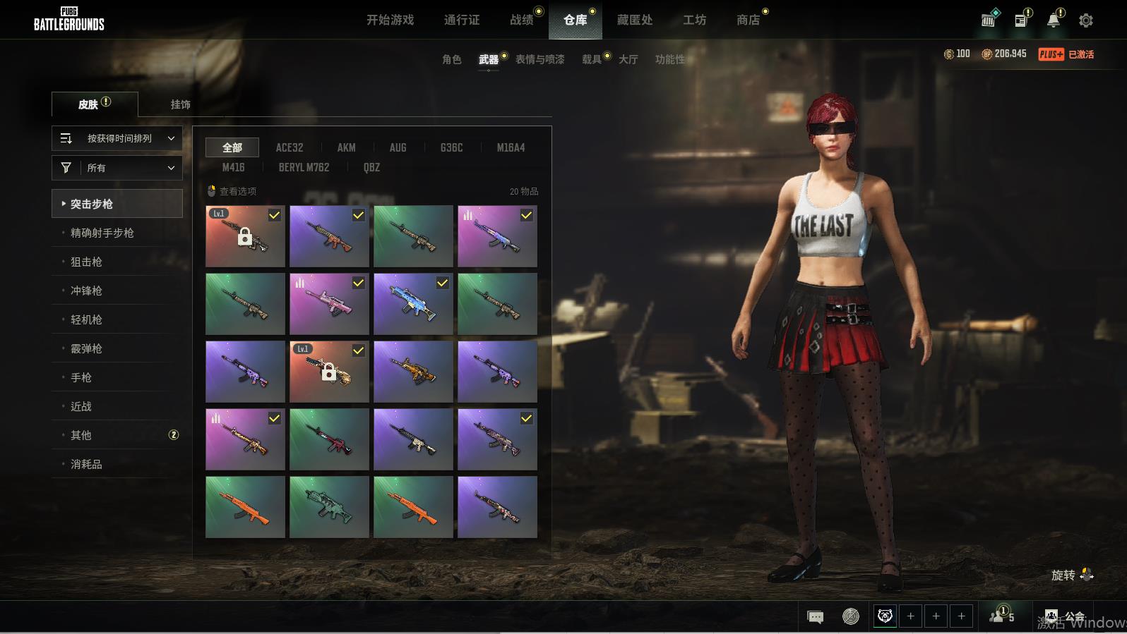 PUBG豪华版满级生存可排位,地狱火-M416;破碎元素-AKM;自动化咒文-QBZ;蔚蓝魔法爆裂考-G36C;糖果碗-ACF32;希腊怪物-08Z;数码沙漠迷