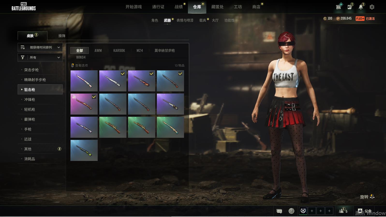 PUBG豪华版满级生存可排位,地狱火-M416;破碎元素-AKM;自动化咒文-QBZ;蔚蓝魔法爆裂考-G36C;糖果碗-ACF32;希腊怪物-08Z;数码沙漠迷彩-M416;银河小队-REPYLM762;蟒蛇花园-AKM;希腊怪物-DBU;弥诺陶洛斯-MINI14;镀金-SKS;幽灵之握-MK12;赛季31章技黄金-MK14;夺目寒光-SKS;彩糖蛋糕-莫辛纳甘步枪;幽灵之握-M24;魔女之力-AWM;天慈悲-KAP98K;心跳掠夺考-MP9;愉悦的绿松色-汤姆逊