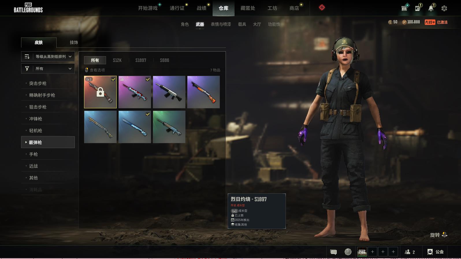 PUBG豪华版可排位,随机2-4级生存等级,烈日灼烧-S1897;剧变熔岩-SKS;镀金枪儿响叮当-KAR98K;无信号-S12K还有更多随机紫色枪皮可玩,皮肤