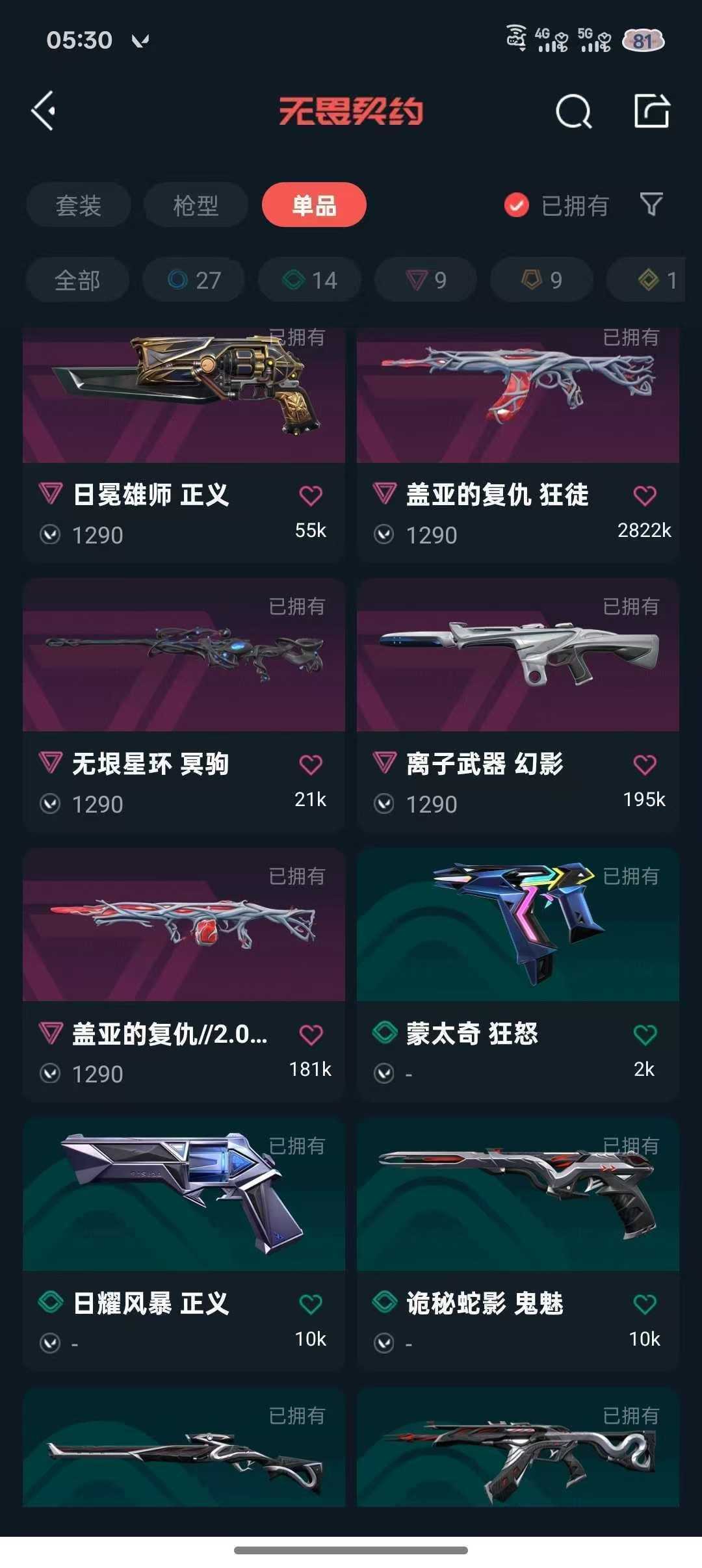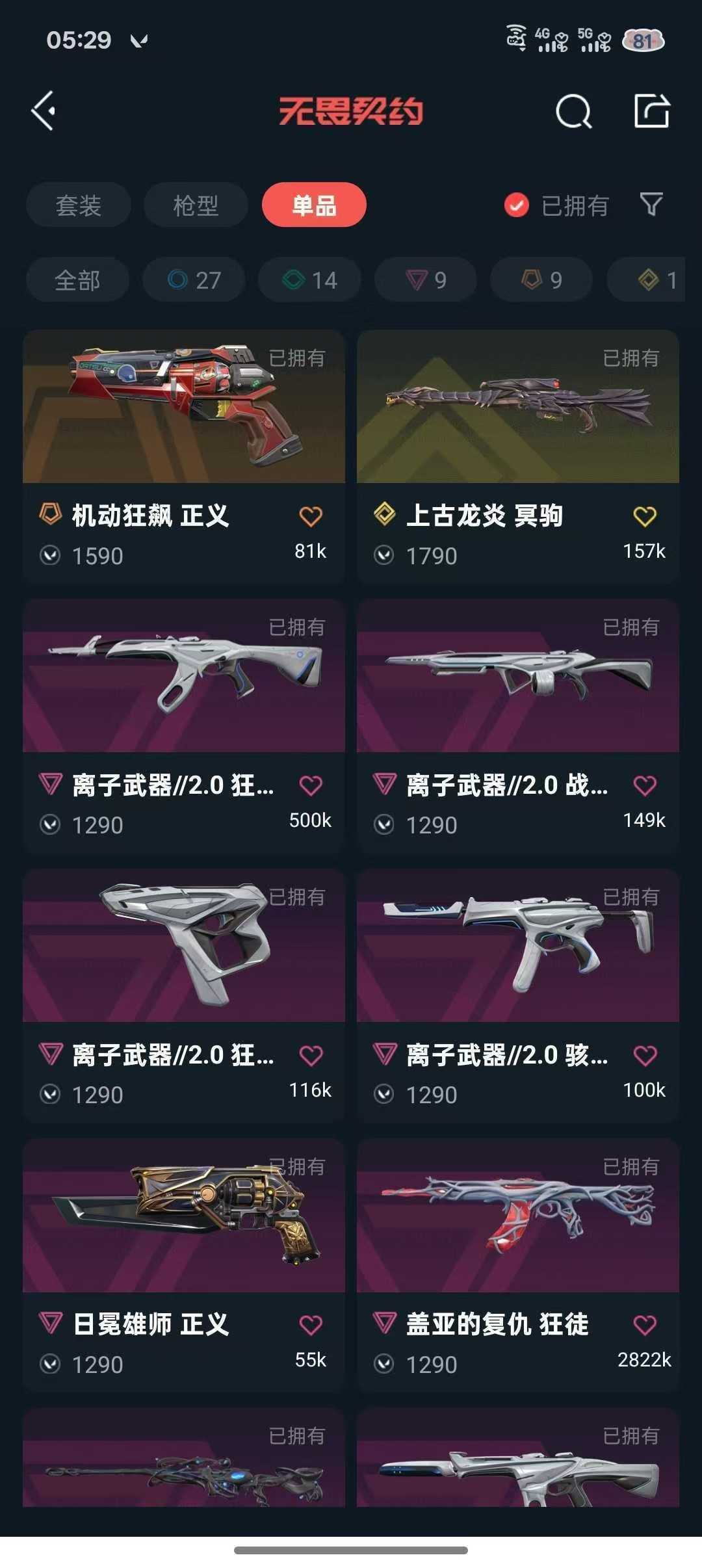 可排位❤️7万库镭切离子2套❤️盖亚套澄湖潋滟✨西部飞将龙炎狙离子幻影
