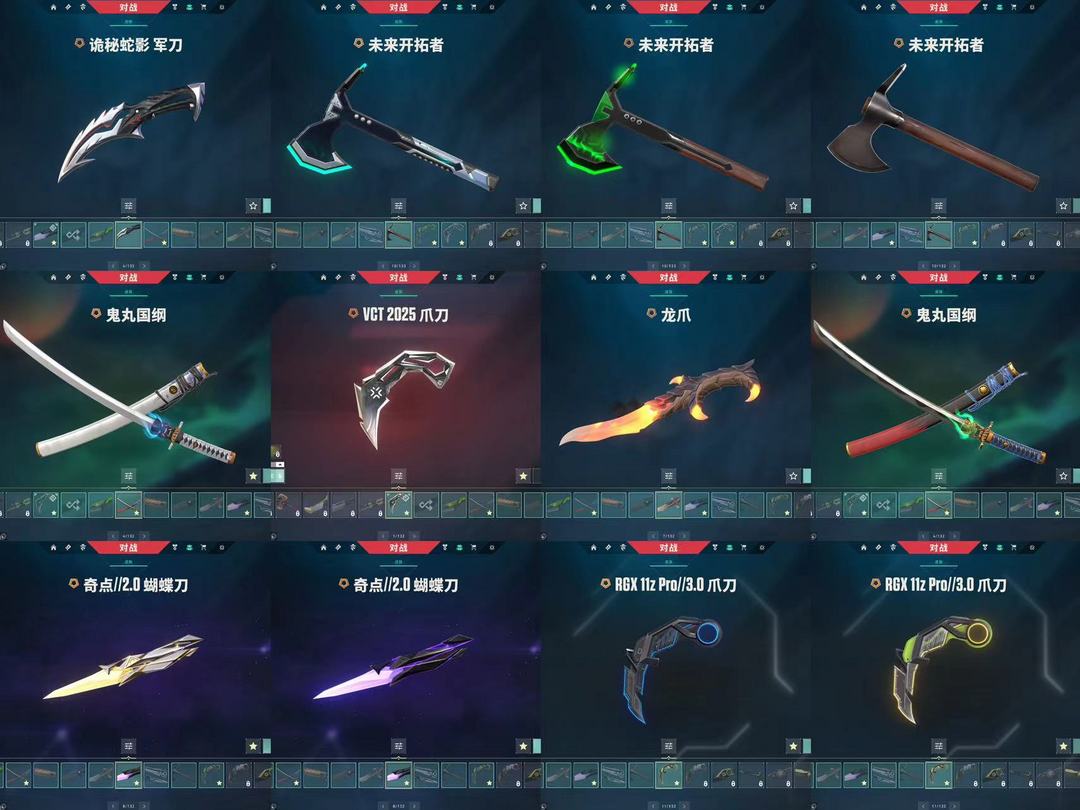 可排位⭐VCT爪刀⭐西部未来边陲套⭐鬼丸国纲太刀⭐上古炎龙套⭐未来开拓者⭐奇点蝴蝶刀⭐VCT