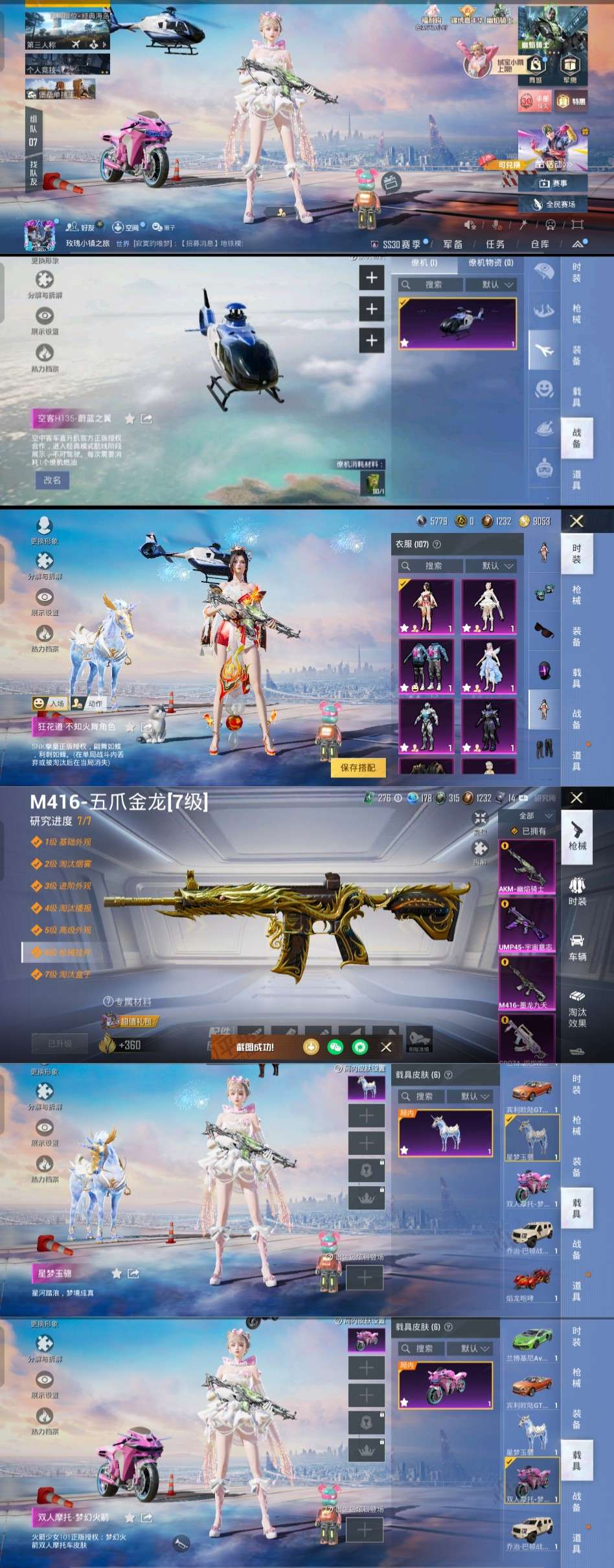 蛇年新装女娲灵识/金蛇填世全套/幽焰骑士全套/星梦奇缘全套/洛天依全套/8车皮满级五爪金幽焰骑士摩托/空客H135撩机/特效武器:满级五爪金龙/墨龙九天/蜜罐辉耀战甲/P90粉樱探弋/GR巴啦啦/星梦奇缘全套/洛天依/歌者冷鸢/机甲6号8号/蜜罐辉耀战甲/P90粉樱探弋/GR巴啦啦/洛天依/歌者冷鸢/七龙珠套/机甲套/好多女角色/好多皮肤/火箭少女摩托车/乔治巴顿/焰龙咆哮/特效飞行器幽焰骑士/龙翔九天/繁龙极客/境逸双华/沙漠之主/鎏金朋克。 好人一生平安,玩得开心。