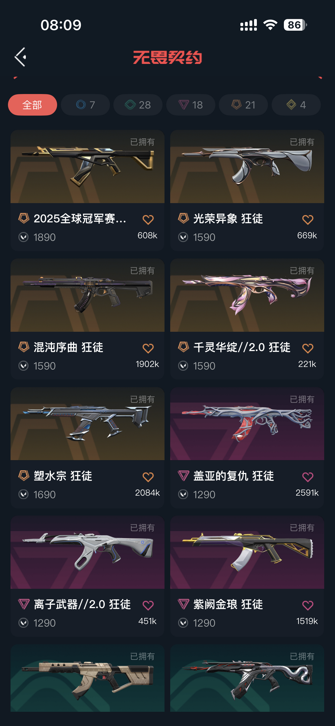 首页 > 租号大厅 > 无畏契约-wegame > wegame/wegame > 四万库存可排位+离子2.0套+掠夺爪刀+22冠军+混沌狂徒+塑水宗狂徒+25冠军+侦查幻影