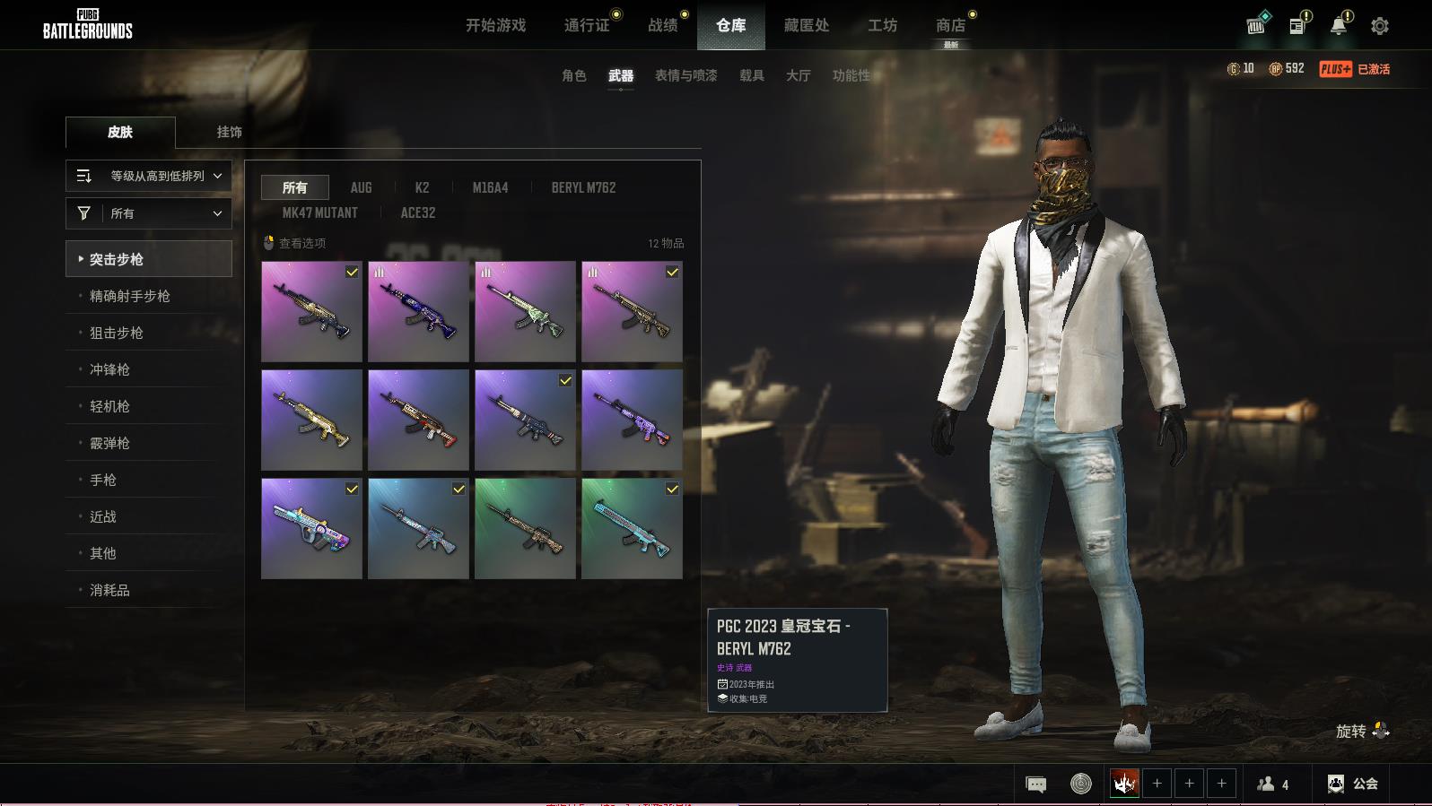 PUBG豪华版绝地求生可排位,PGC2023皇冠宝石-RERYLM762;湮灭-BERYLM762;青龙之灵-ACE32;瓦尔哈拉-ACE32;PGC2021群雄逐鹿-RERYLM762;梅花同花-BEPYLM762;皇家舰队-K2;糖果碗-ACF32;AIXLEET的电玩猫咪-AUG;镀金-SKS;幸运骑士-SKS;疯狂收割考-DBU;鎏金王朝-DBU;彩虹之上-MINI4;蟒蛇花园-OBU;皇家舰队-MINIA;紫色雨滴-VSS;雪国风光-汤姆逊冲锋枪;意速之道-P90;