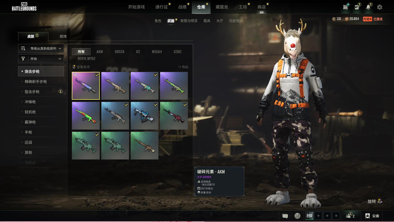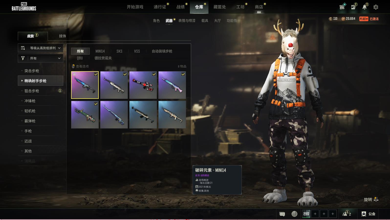 PUBG豪华版绝地求生可排位,无重力-MP5KLv.318;破碎元素-AKM;破碎元素-MINI14;淬火真金-K2;无慈悲-K2;无拘来世-K2;渗透与破坏-