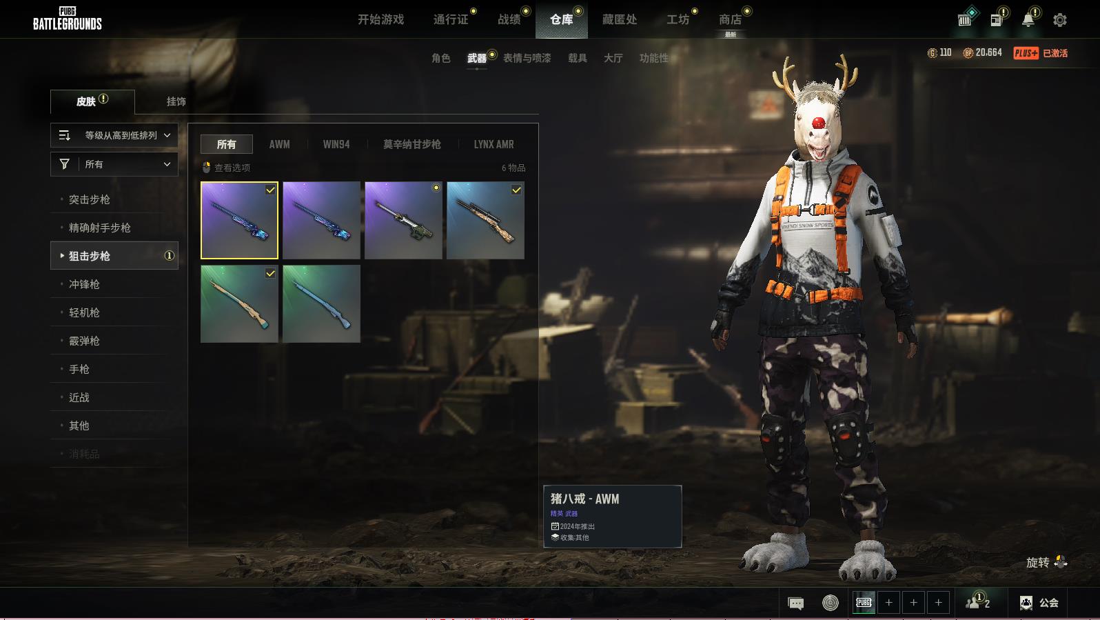 PUBG豪华版绝地求生可排位,无重力-MP5KLv.318;破碎元素-AKM;破碎元素-MINI14;淬火真金-K2;无慈悲-K2;无拘来世-K2;渗透与破坏-AKM;幸运骑士-SKS;斑点狗-VSS;彩虹之上-SLP;蟒蛇花园-OBU;魔力甜心萨莉的永恒挚友·德拉贡诺夫;猪八戒-AWM;赛季35竞技黄金-LYNXAMP;无信号-MICROUZI冲锋枪