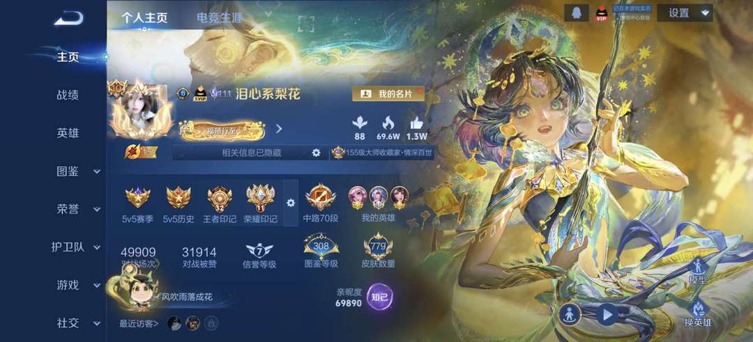 【非云直上】V10★皮肤榜一★539皮满典藏★鲁班时之奇旅会员★虞姬黛羽霜翎星元★吕布白金战神★全能大师★多金标★个性按键