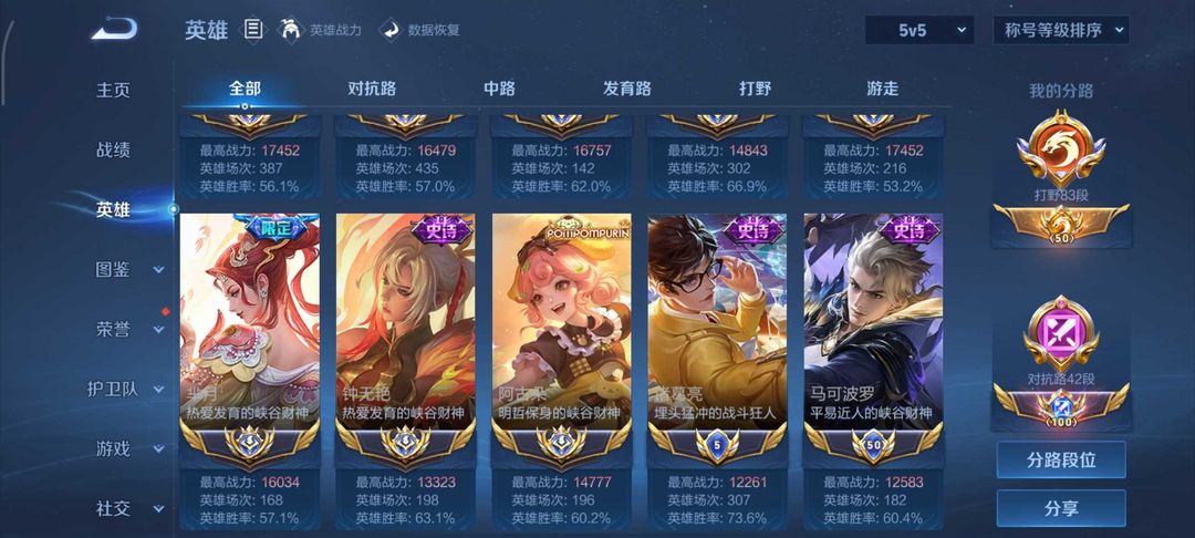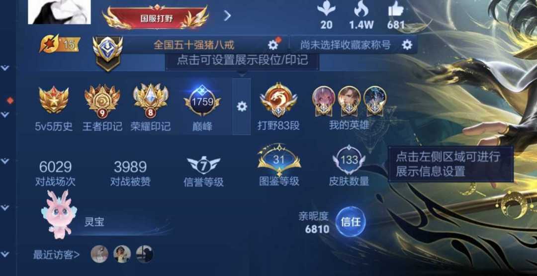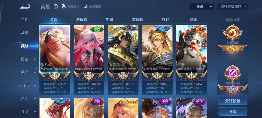 本周在榜国服50强猪八戒100强影梦琪⭐83段打野⭐八国服打野极品帅号