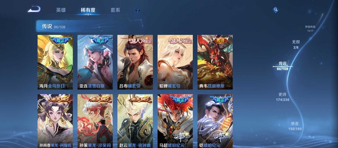 上不去看最后一张图游戏名字长租扫码上号无双贵族10,极品674皮,新皮肤基本全有,满珍品,7无双,10典藏,神威,炽阳神光,还有许多极品皮肤看图皮肤