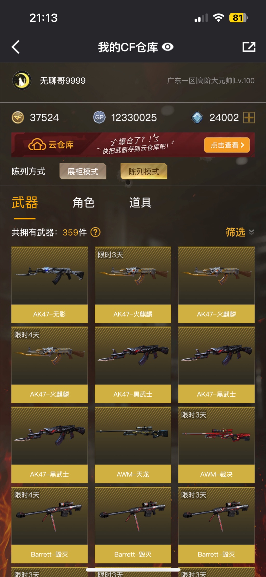 • 游戏区服:穿越火线 / 电信区 / 广东一区