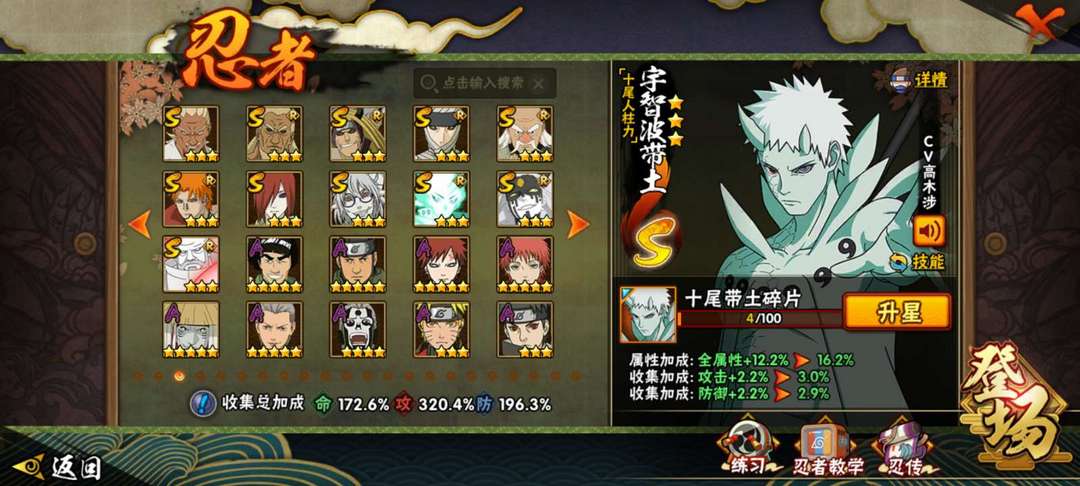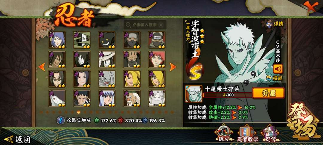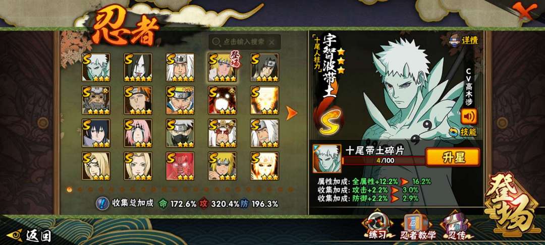 300多忍者基本上所有忍者都齐了,,很多限定忍者,文明租号