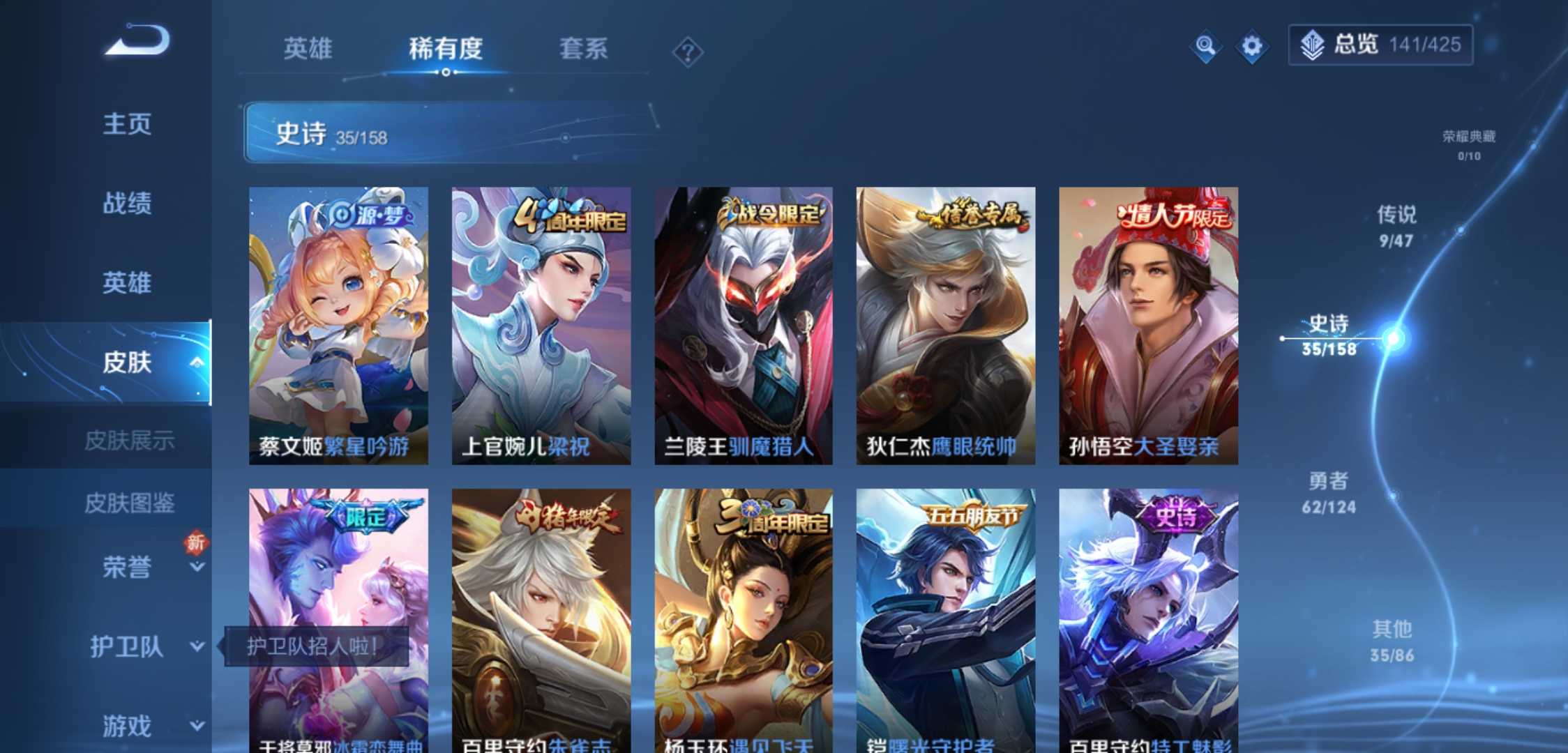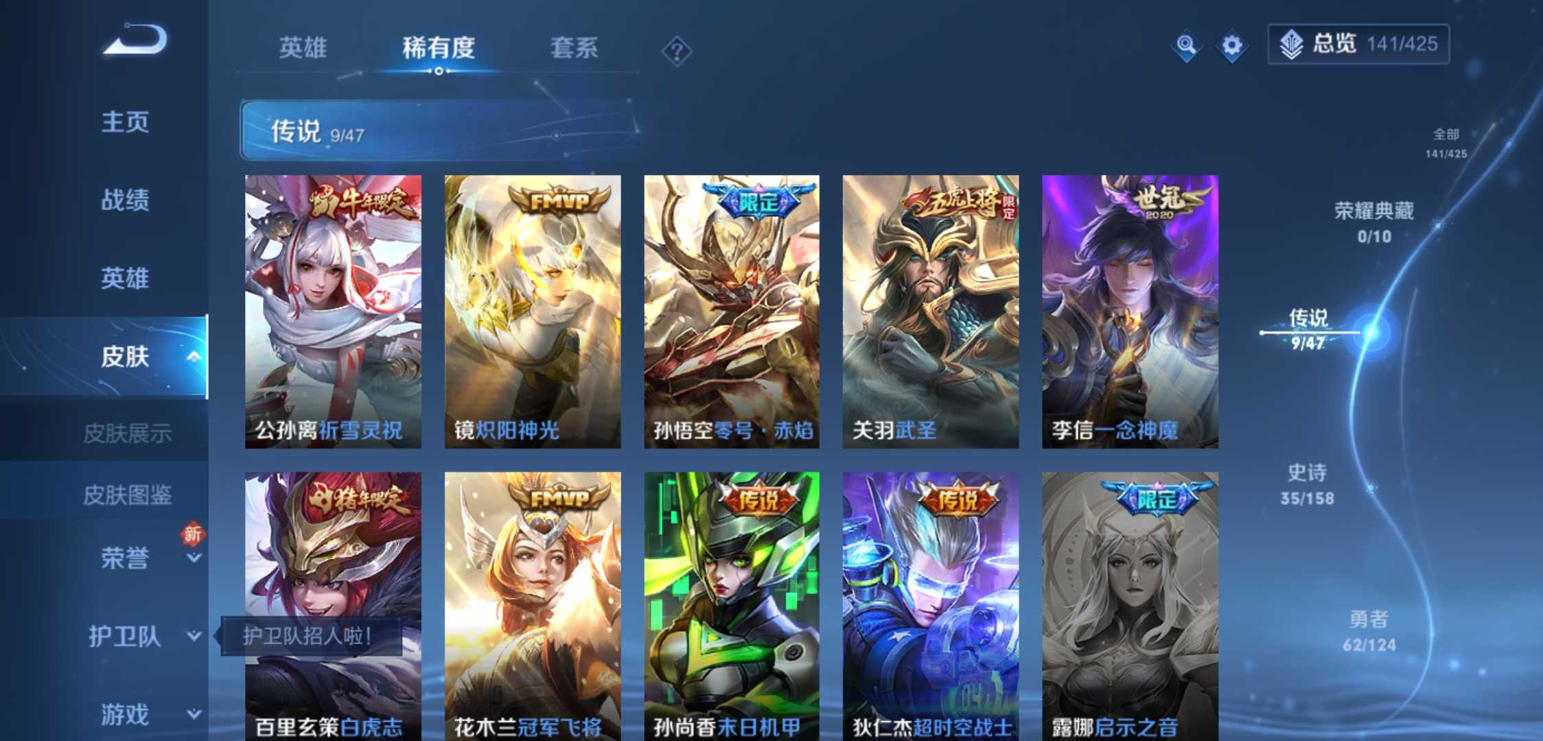 V9丨荣耀四典藏丨典藏半月丨典藏孙尚香丨典藏小乔丨典藏鲁班虎年五套皮肤丨猪年凯丨赵云世冠丨牛年吕布丨牛年孙功离丨520限定孙策丨限定皮肤多多丨挂机永久拉黑!