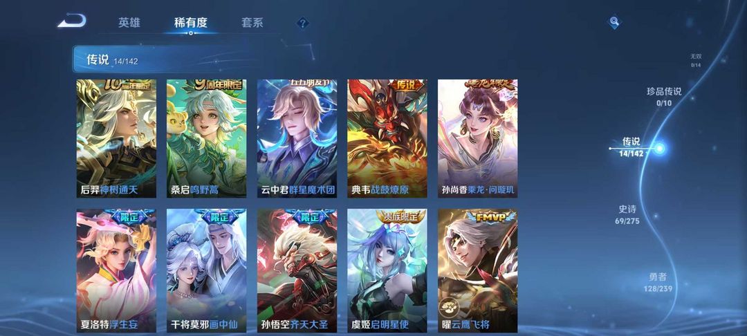 V10、550皮14水、吕布典藏-千魇归渊、云缨-神骥·越千峰、怪盗基德、伽罗星传说红枫、瑶典藏拾光映像、冥王哈迪斯、、龙年限定、齐天大圣
