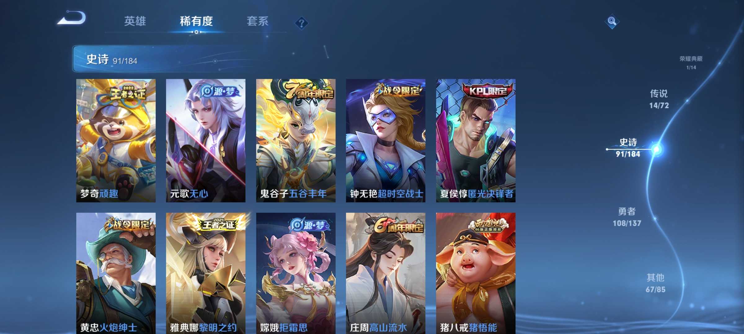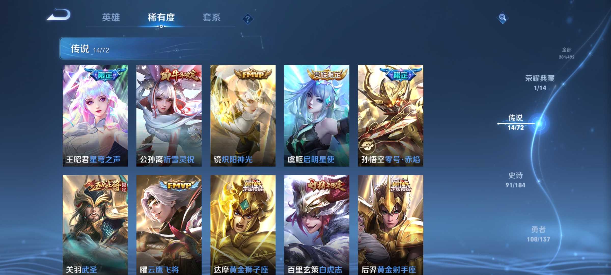 V10、550皮14水、吕布典藏-千魇归渊、云缨-神骥·越千峰、怪盗基德、伽罗星传说红枫、瑶典藏拾光映像、冥王哈迪斯、、龙年限定、齐天大圣