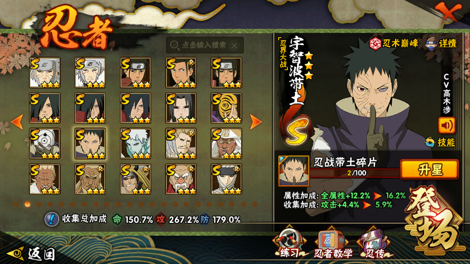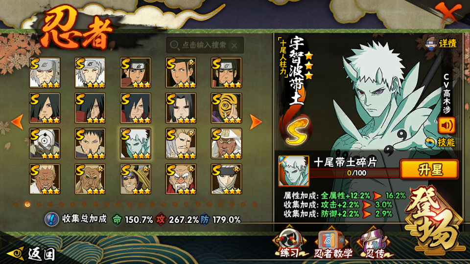 42S✱十尾带土✱九喇嘛水门✱须佐卡卡西✱秽土解斑✱创立斑✱忍战带土✱佩恩超✱暴怒带土✱全高招忍者