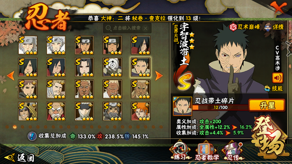 • 火影段位: 暗部3阶
