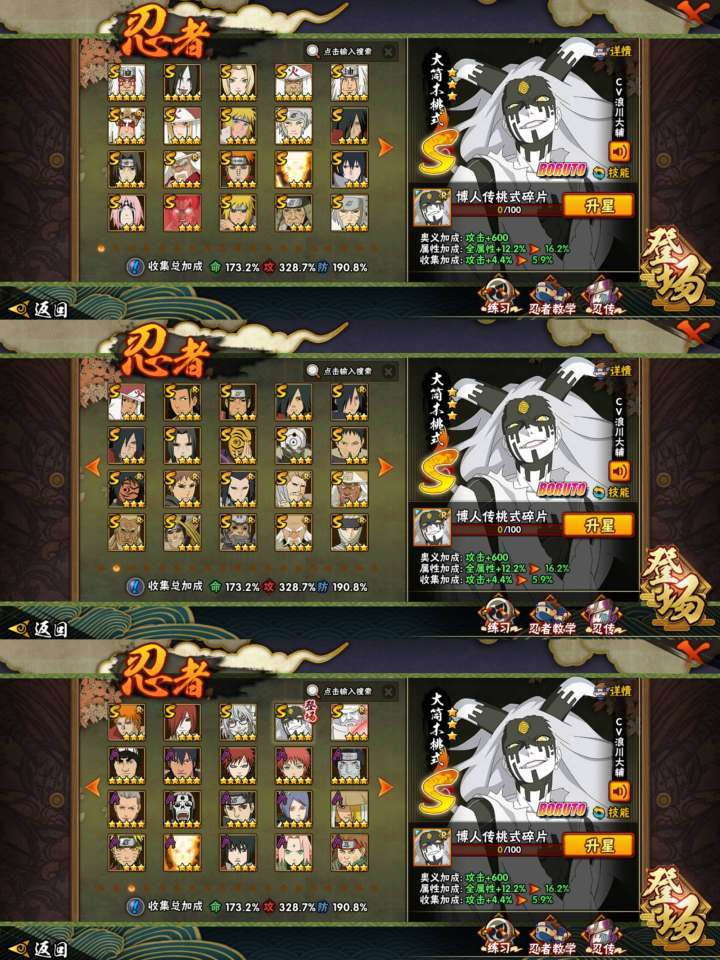 侠隐佐助♍♓4000w战♒410全忍者♓66魅力♍v15顶配♌全通灵时装♥战区组织第一