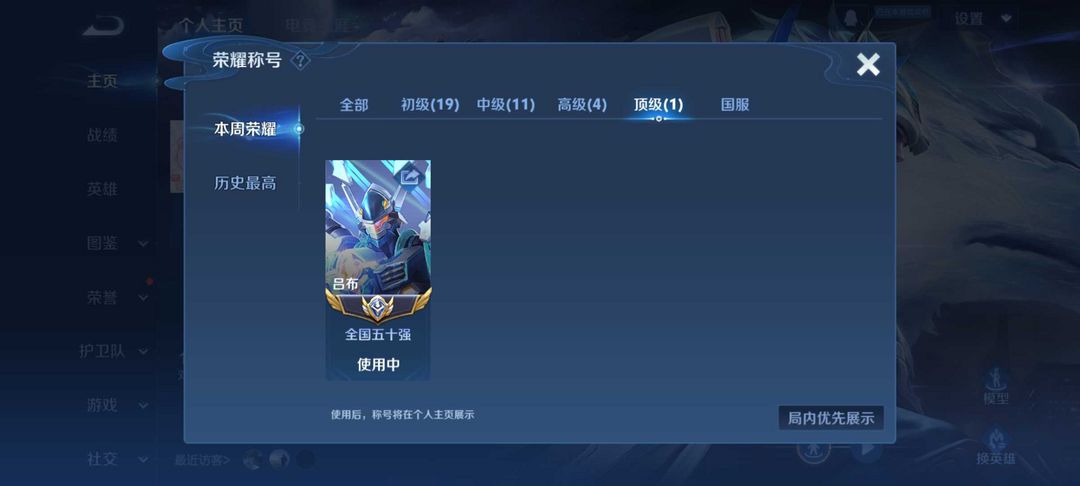 立即租号首页 > 租号大厅 > 王者荣耀 > 标题写明区服/QQ > 本周在榜国服50强吕布⭐巅峰1800⭐74段对抗❤️历史国服亚连夏洛特项羽