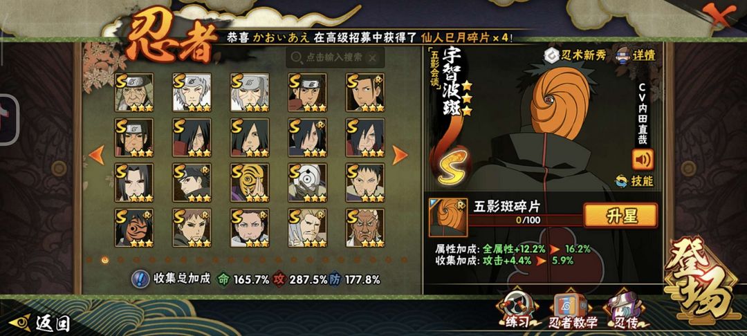 【金身水门已秒】52s55a(大熊猫)五影带土⭐六尾鸣人⭐大筒木舍人⭐须佐止水⭐漂泊小南⭐侠影纲手