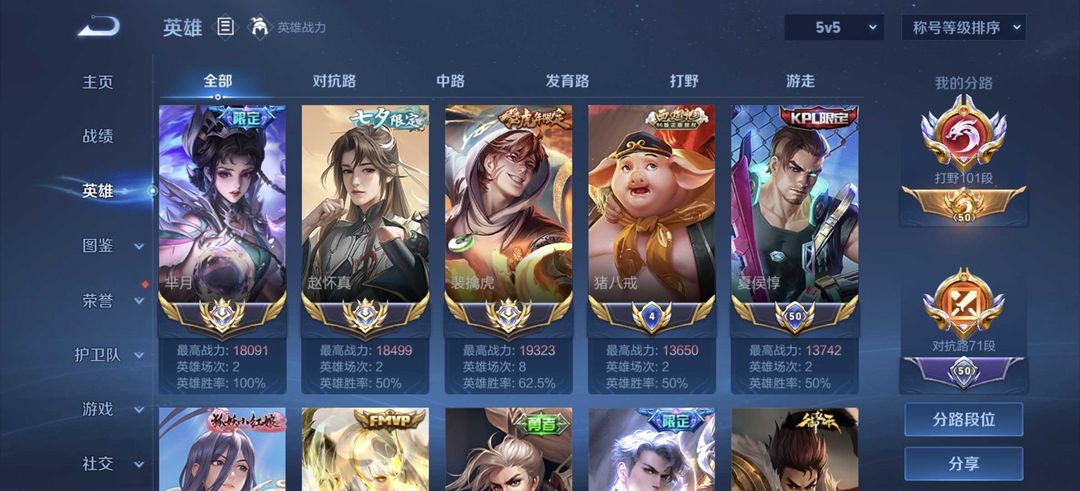 102段打野71段对抗❤️巅峰1800禁巅峰❤️历史五国标老虎闵月梦奇赵怀真哪吒一堆热门小国