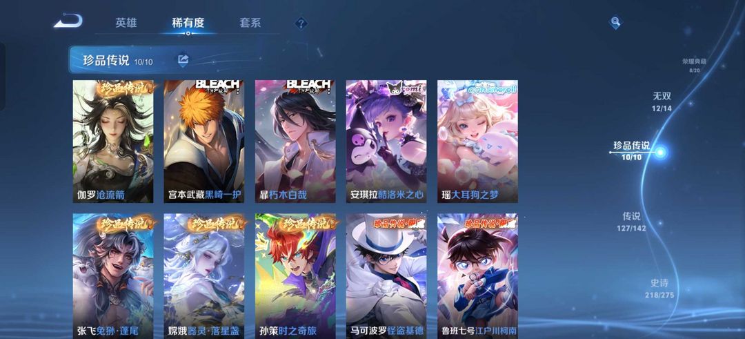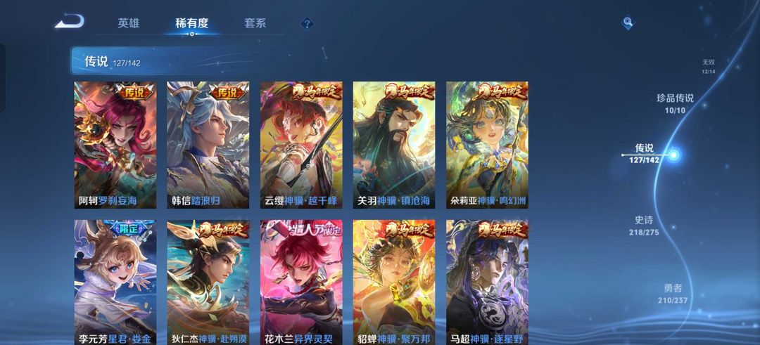 【非云直上】V10★皮肤榜一★539皮满典藏★鲁班时之奇旅会员★虞姬黛羽霜翎星元★吕布白金战神★全能大师★多金标★个性按键