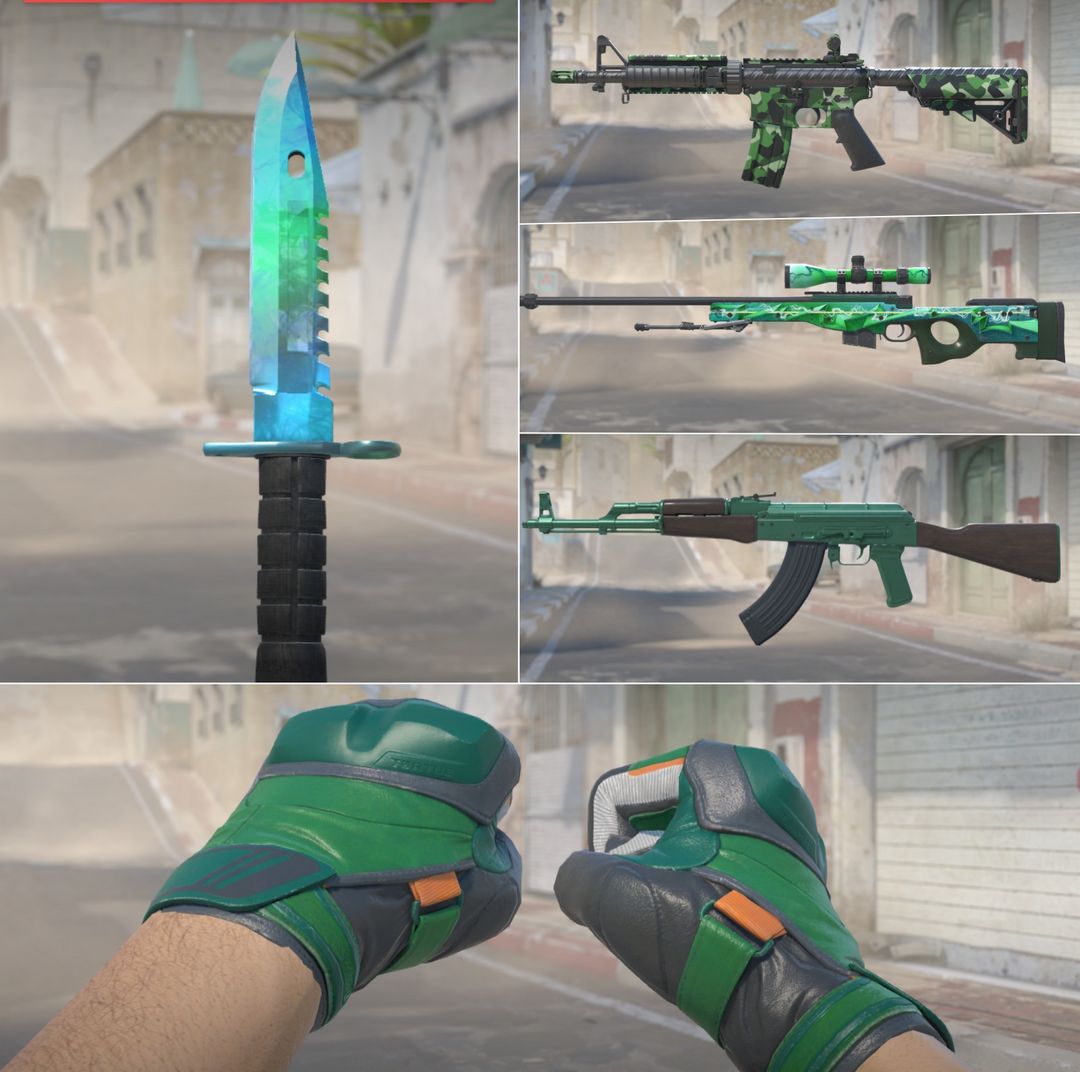 完美C✅M9伽玛多普勒✅崭新玳瑁✅一击碧命AWP✅寒翠AK47✅战鹰M4A4✅满配绿色套