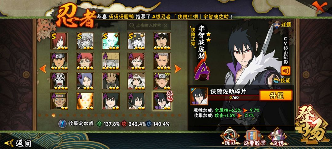 【44s】【55A】侠影佐助,金身水门,永痕万花筒佐助,秽土再不斩,暴怒六尾,神农,大筒木舍人「最终章」,传说中三忍自来也,漂泊带土,绯流琥蝎,须佐卡卡西,千手柱间 「秽土转生」,大筒木桃式,宇智波鼬 「秽土转生」,忍战樱等