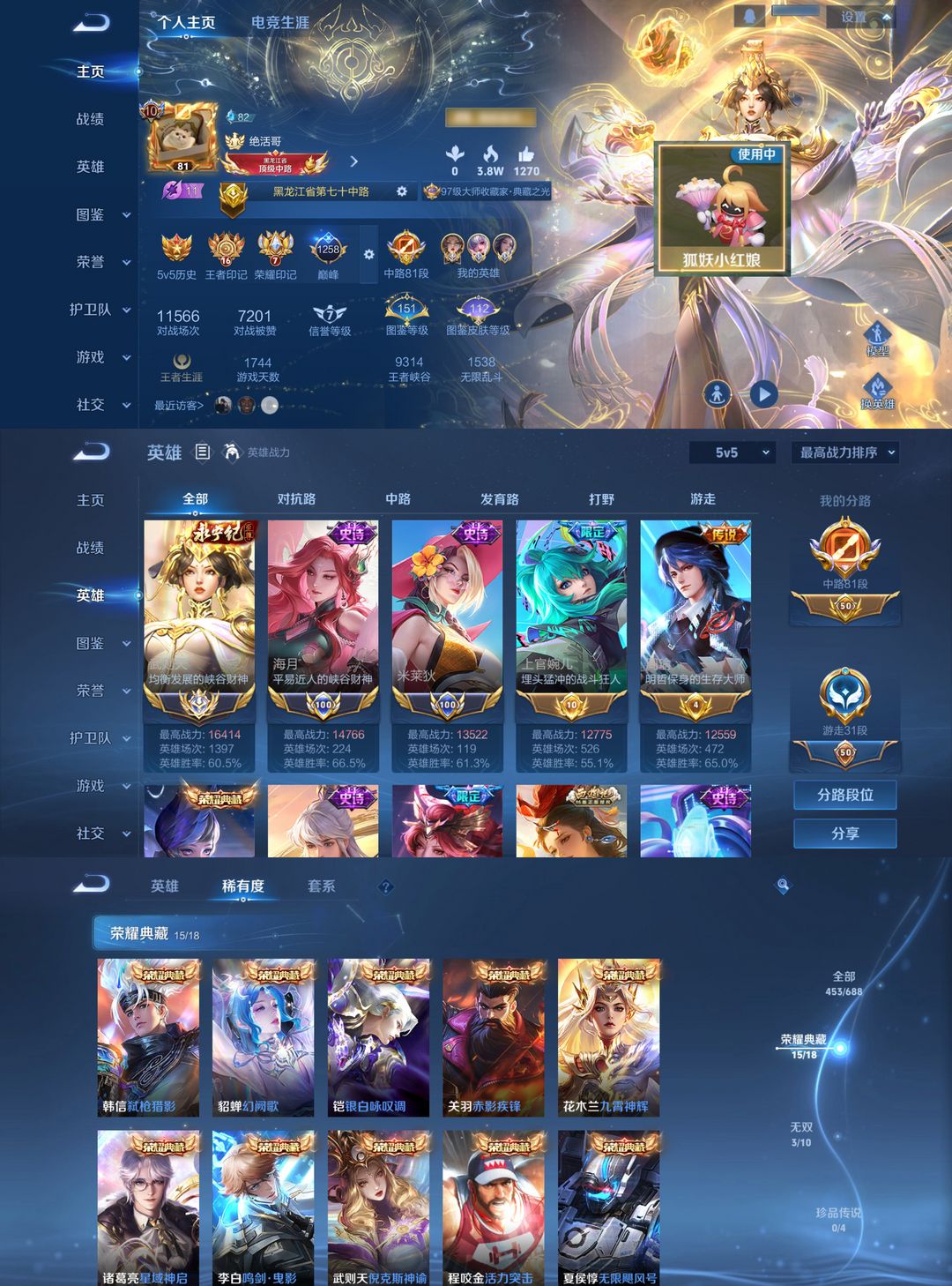 女生号 贵10 多皮肤多传说 别拿那些空号v10来比 要看性价比 貂蝉武则天夏侯惇孙悟空李白鲁班小乔荣耀水晶 妲己九尾无双皮肤 80个传说 473皮肤
