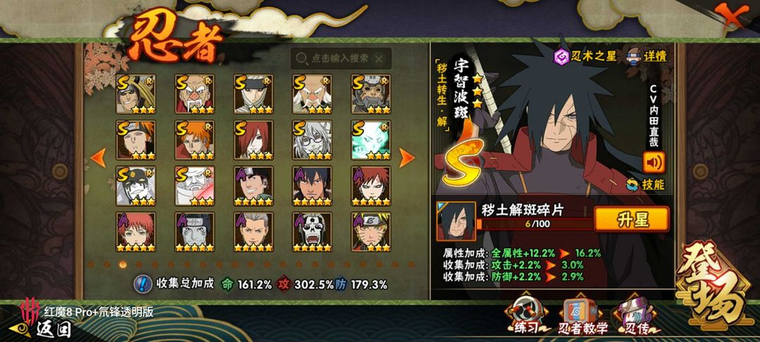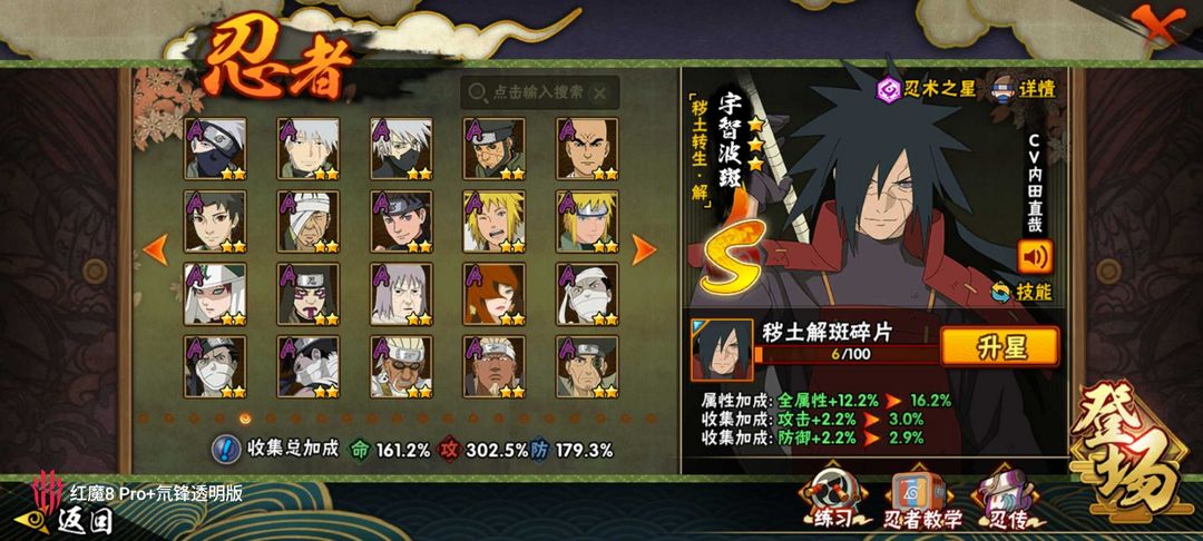 50S 67A 250忍者 千手扉间「漂泊武士」/佩恩·六道 「漂泊浪客」/长十郎 「六代目水影」/大野木「忍界大战」/神秘面具男 「红夜之刃」/漩涡鸣人 「九喇嘛连结」/宇智波带土「忍界大战」/迈特凯「死门」