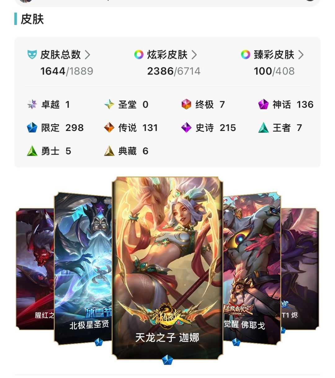 1644皮肤❤️2386炫彩❤️可排位❤️龙马大礼包❤️LPL臻彩全❤️神话娜美永恩❤斗魂瑟提