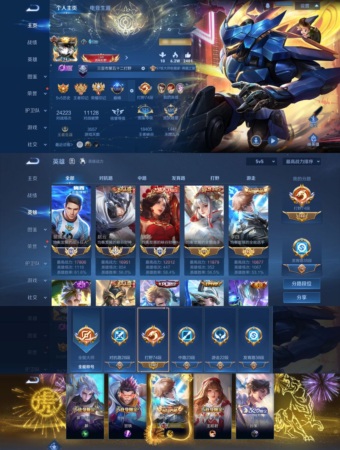 在榜市级打野路74段❤历史国服赵云国标老虎露娜❤7典藏全能大师5虎4牛5鼠5猪5虎上将