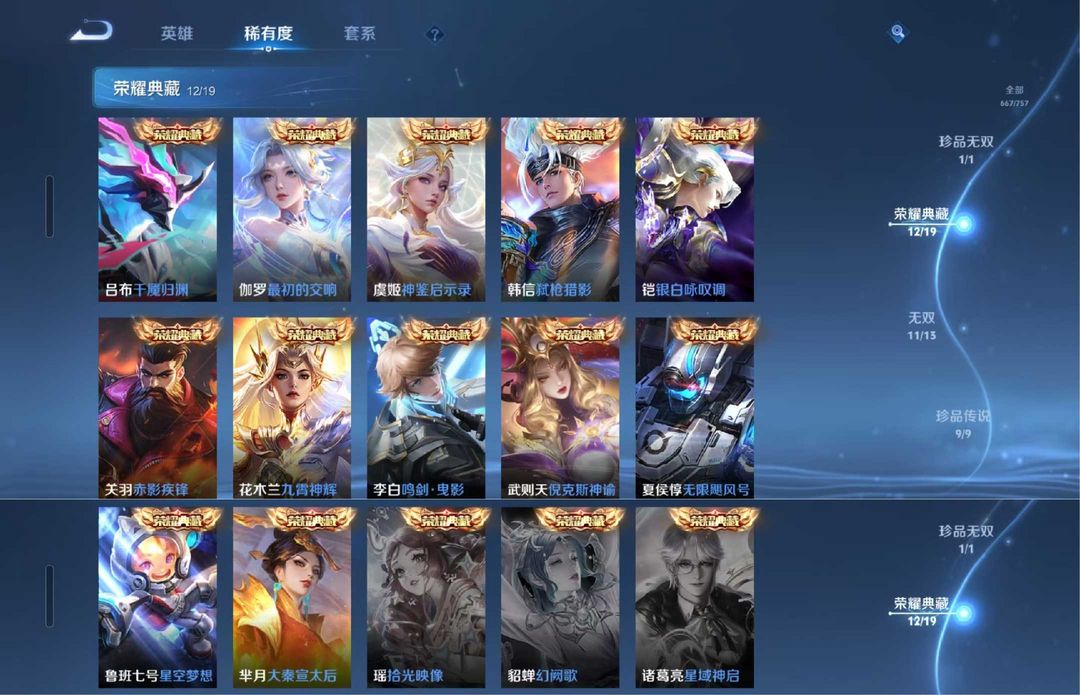 【非云直上】V10★皮肤榜一★539皮满典藏★鲁班时之奇旅会员★虞姬黛羽霜翎星元★吕布白金战神★全能大师★多金标★个性按键