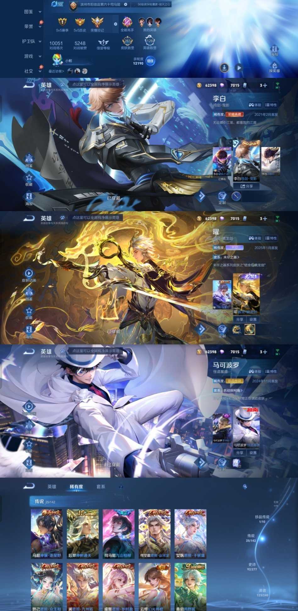 V10、550皮14水、吕布典藏-千魇归渊、云缨-神骥·越千峰、怪盗基德、伽罗星传说红枫、瑶典藏拾光映像、冥王哈迪斯、、龙年限定、齐天大圣