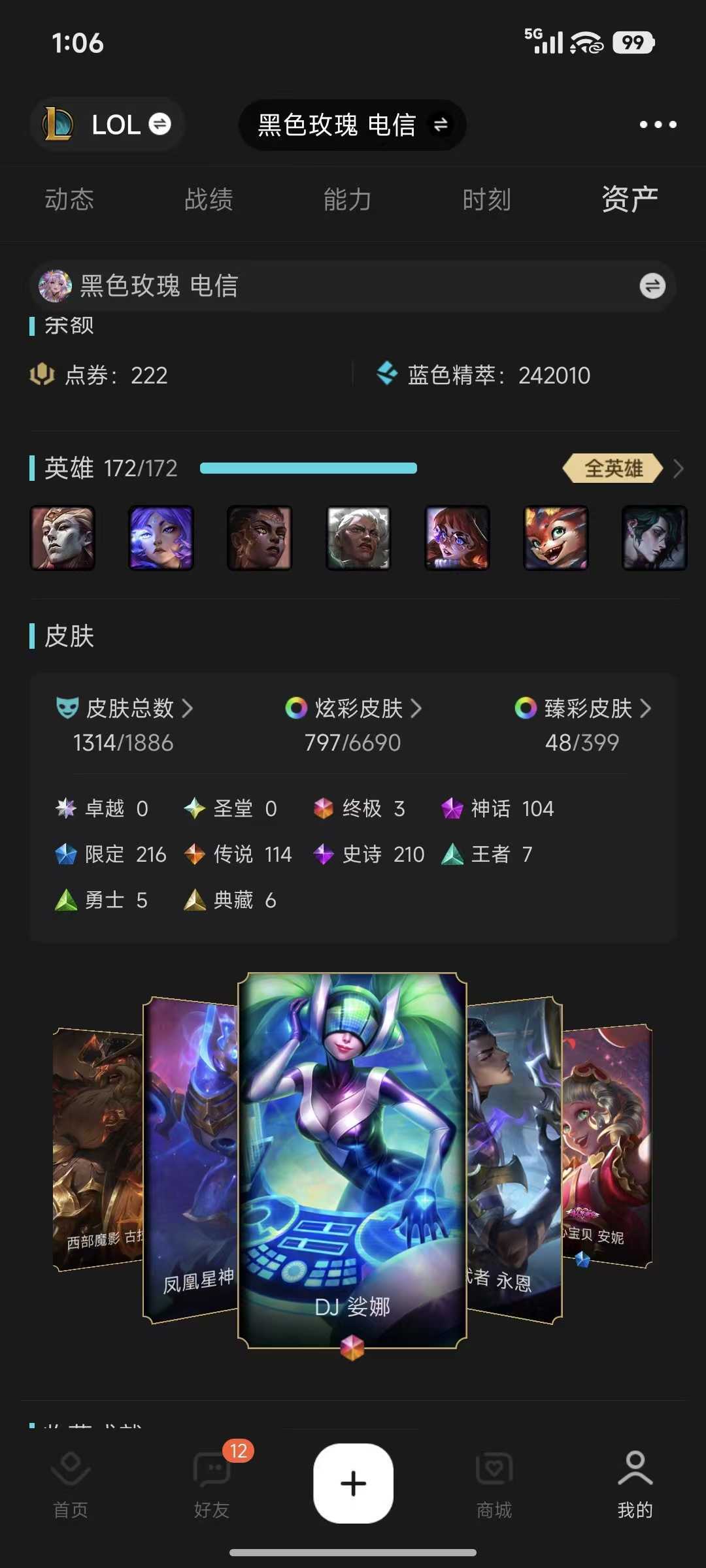 皮肤帝🌺 真实1186皮肤至臻全有 海克丝全有 5色龙虾齐 摄魂VN花木兰原计划 电玩情人节