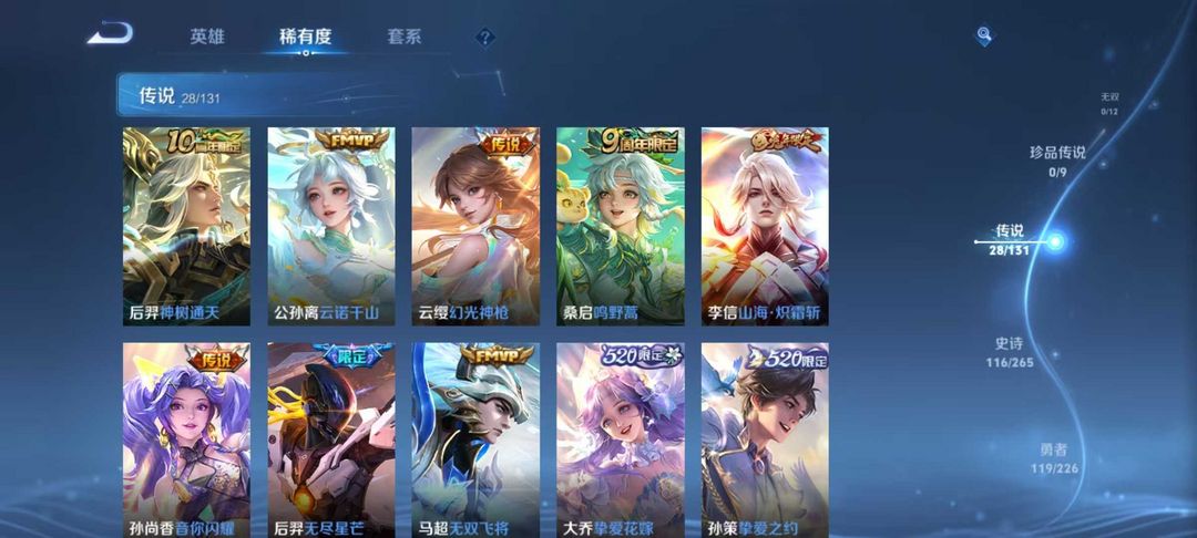 【天花板V10】535满皮满典藏/大乔时之奇旅新皮/虞姬星元/白金战甲/个性按键★多星元部件