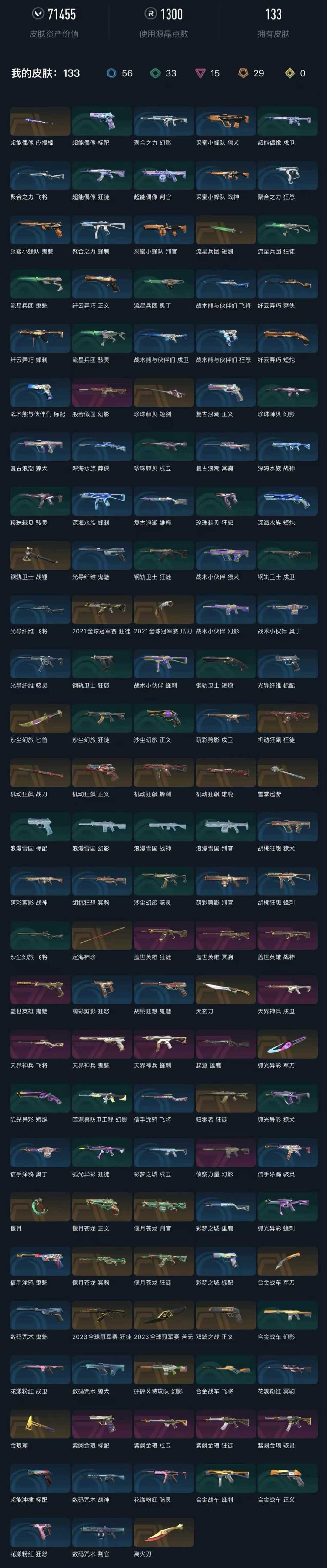• 武器皮肤数量: 133