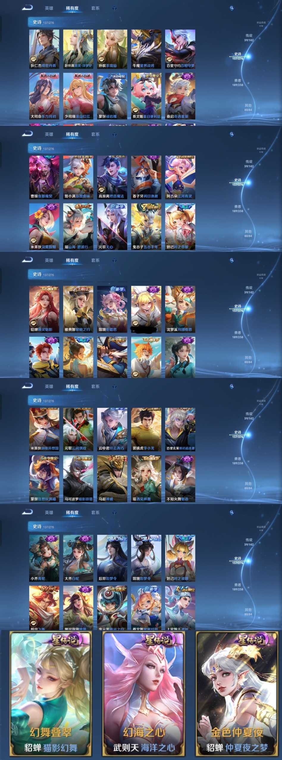V10、550皮14水、吕布典藏-千魇归渊、云缨-神骥·越千峰、怪盗基德、伽罗星传说红枫、瑶典藏拾光映像、冥王哈迪斯、、龙年限定、齐天大圣