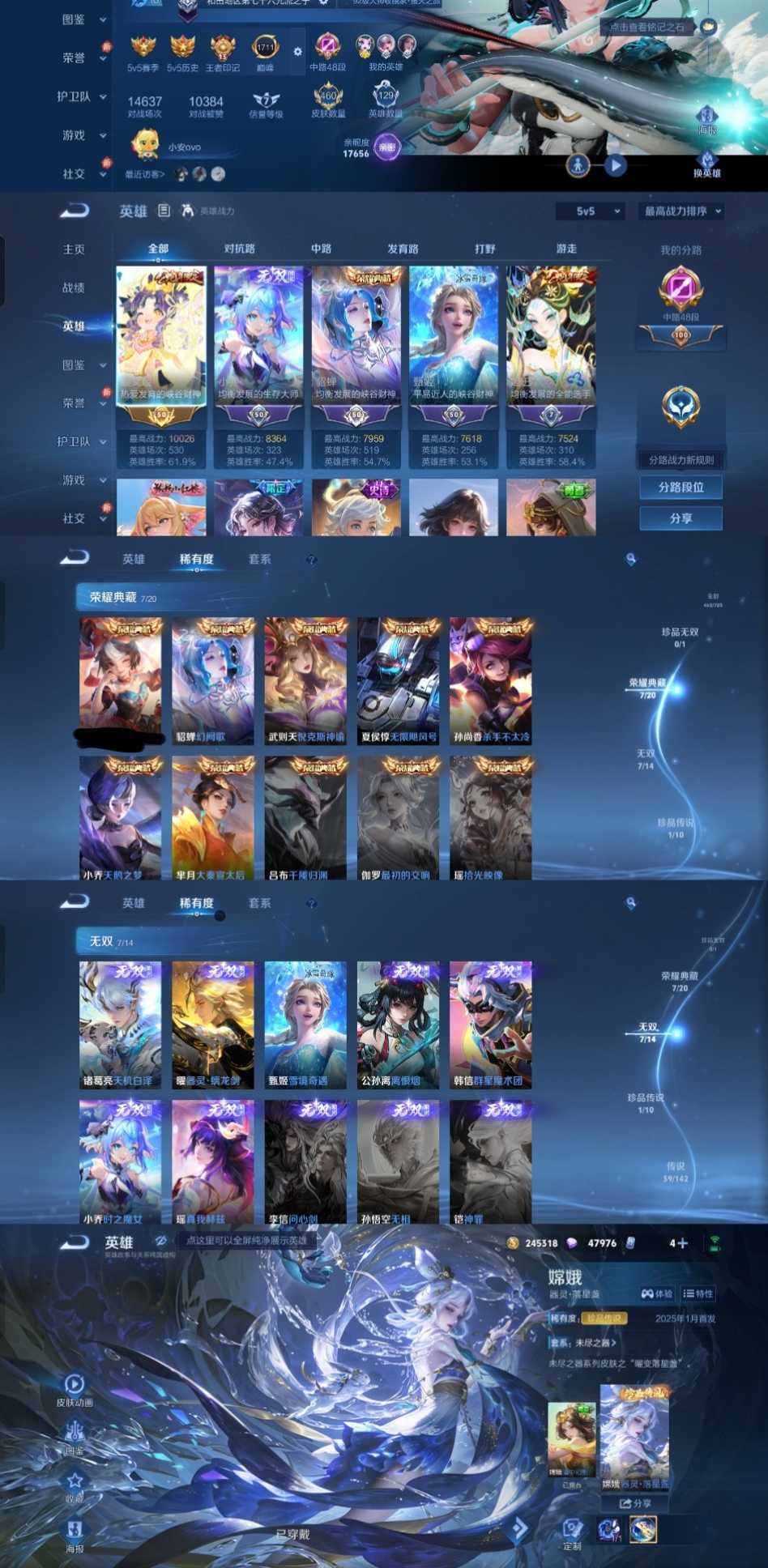 女生号 贵10 多皮肤多传说 别拿那些空号v10来比 要看性价比 貂蝉武则天夏侯惇孙悟空李白鲁班小乔荣耀水晶 妲己九尾无双皮肤 80个传说 473皮肤