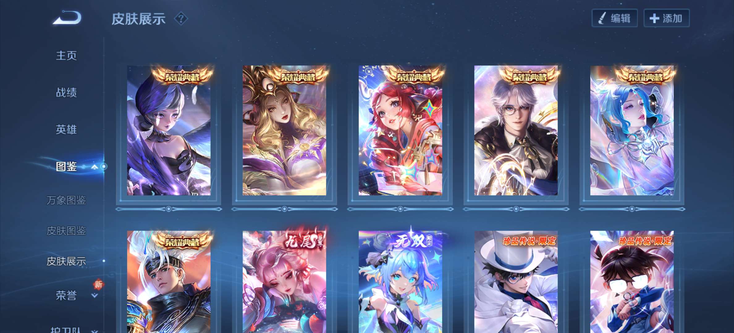 v10妹子号,瑶妹荣耀典藏,柯南双天幕,柯南与基德,514皮肤,好看的皮肤基本都有