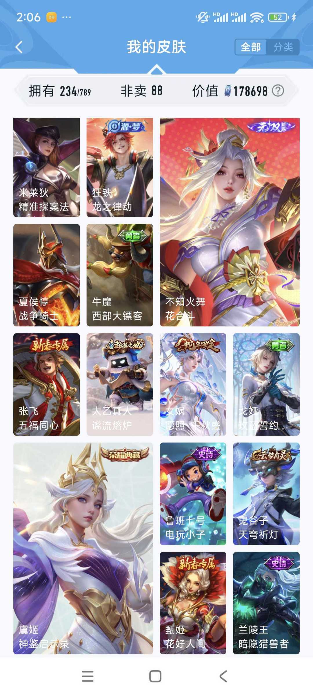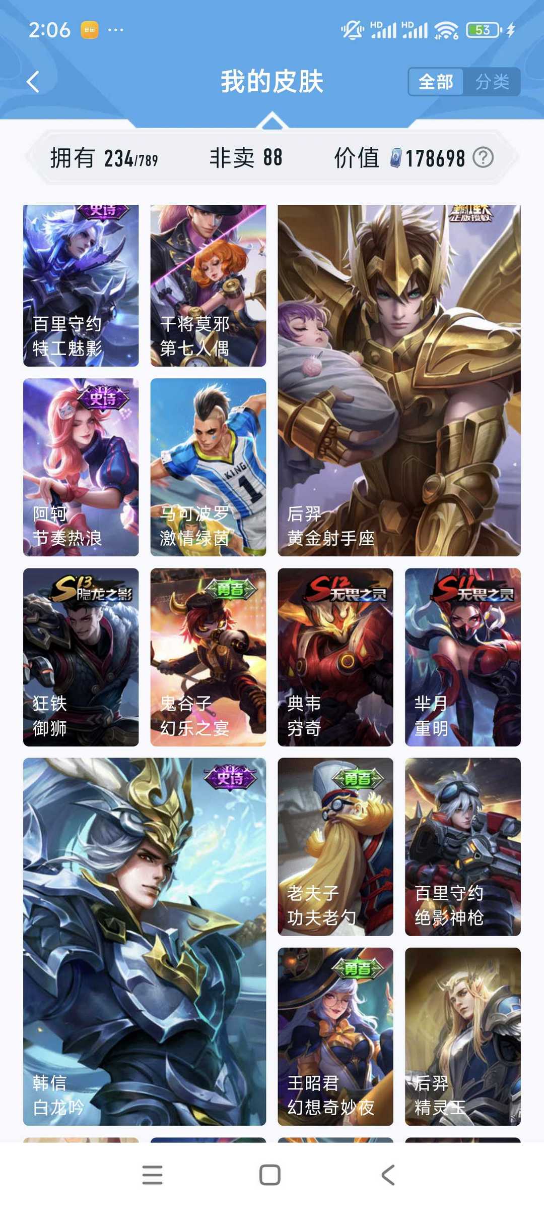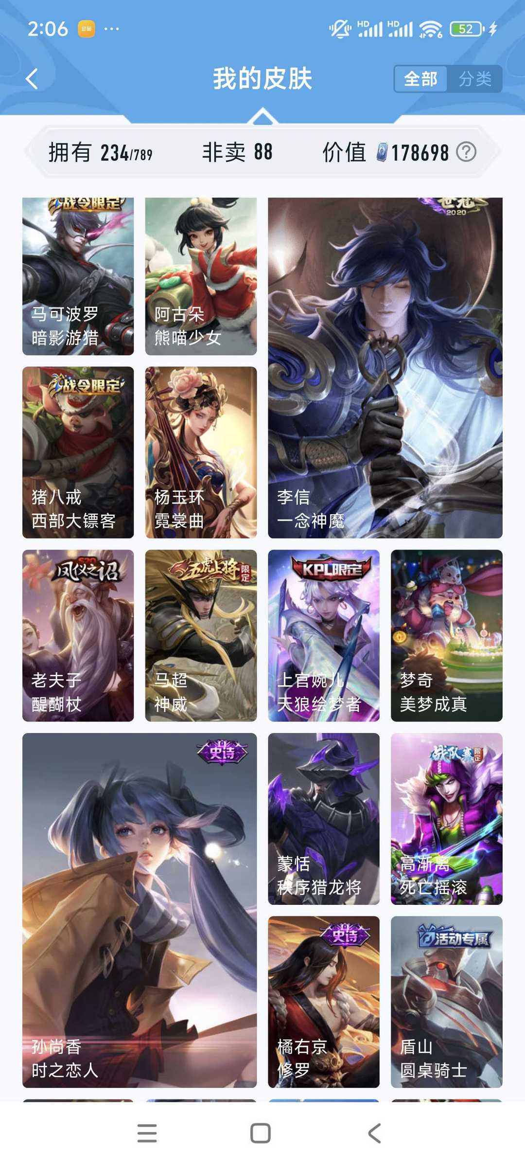 🌸手Q181区大魔术师🌸V10全网最低价🌸377个皮肤🌸全英雄🌸4荣耀典藏🌸传说史诗多到用不完🌸可人脸协助🌸可排位🌸