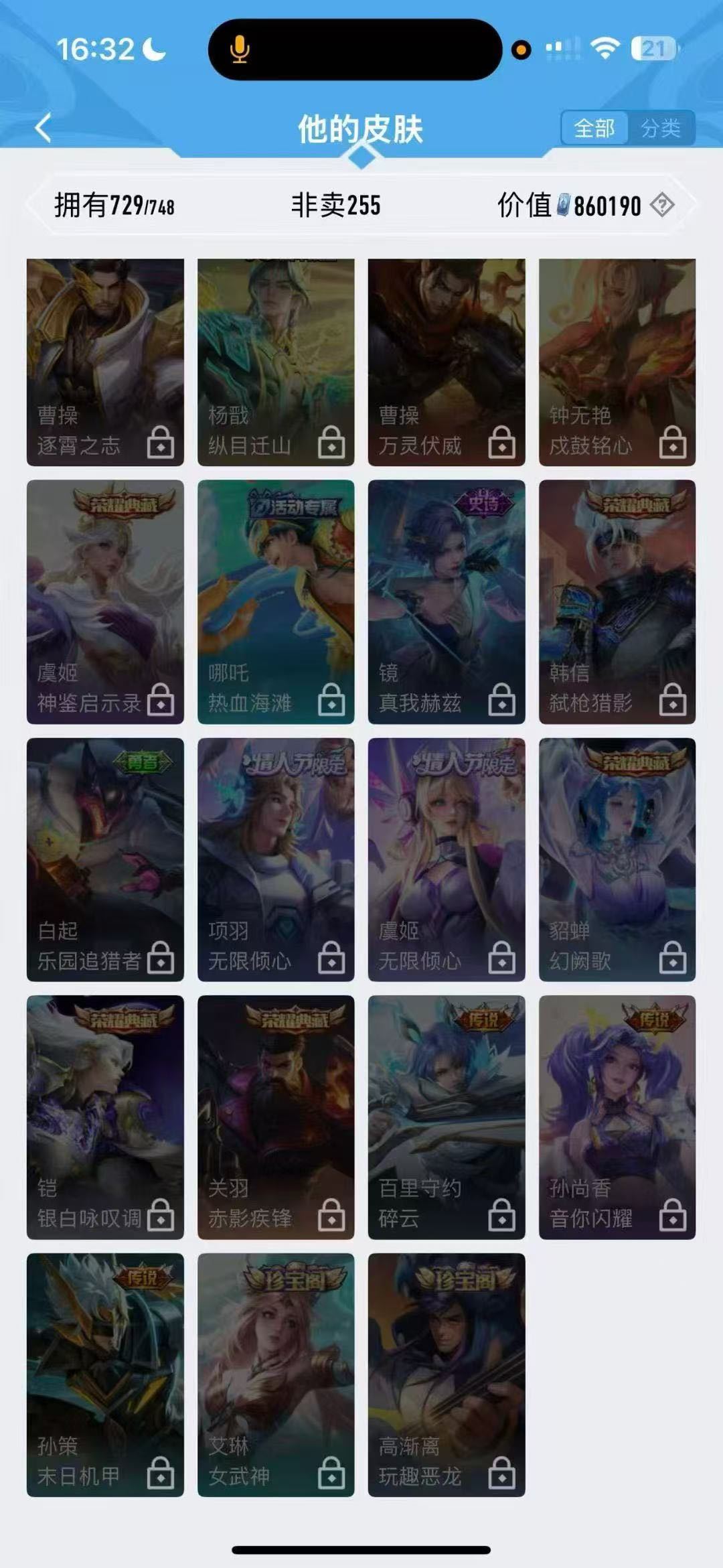 V10满典藏、3小兵皮493皮、最初的交响、愿照·九州拓、万物之道、怪盗基德、龙年限定全套、太华、白虎志、至尊宝、排月行、无双飞将、注意上不了号点号主协㫑