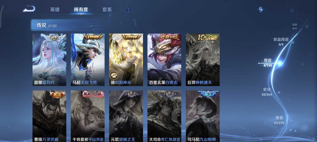 【非沄直接上号】极品V10★三历史国标★430皮★六典藏★诸葛亮新典藏★虎年五限定★鸣剑戈影★活力突击️★多限定