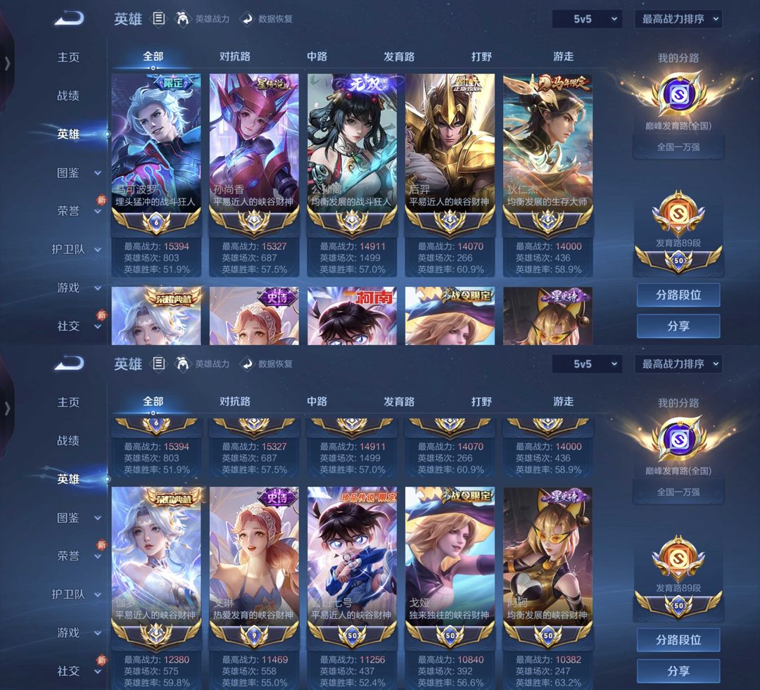 四月在榜小国标国服发育路❤️巅峰+11省标马可公孙离鲁班孙尚香历国服公孙离伽罗狄仁杰孙权虞姬艾琳