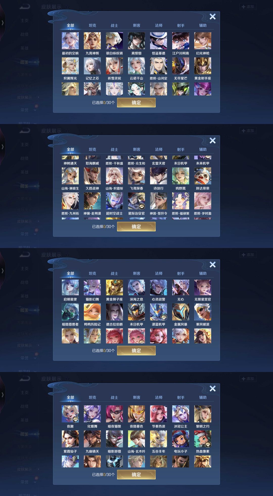 v10、537皮6水4无双、安琪拉-颠倒童话·魔镜、朵莉亚-神骥、遇见神鼓、齐天大圣、白虎志、韩信荣耀典藏、73传说、时之魔女、瑶无双、青丘、九尾、神器明辉仪