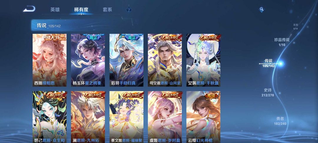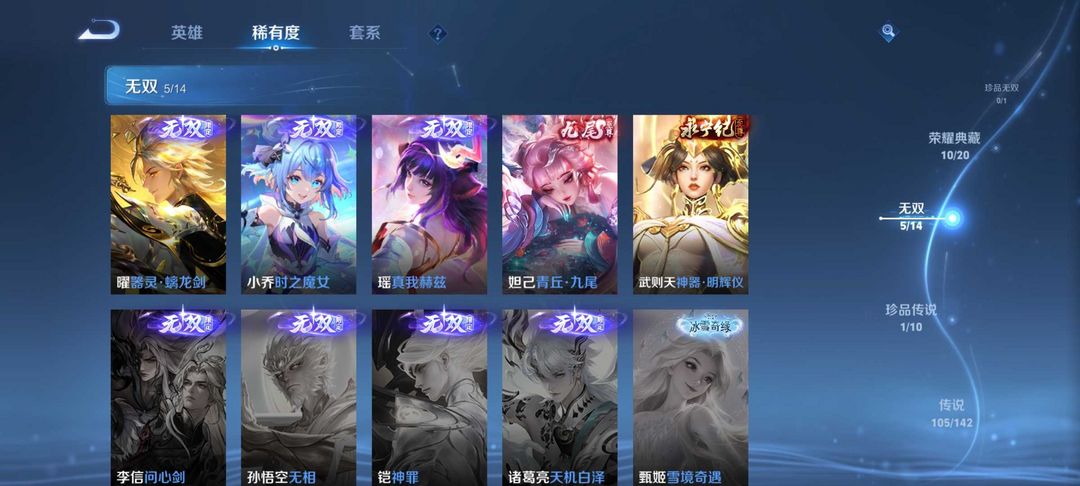 【非云直上】V10★皮肤榜一★539皮满典藏★鲁班时之奇旅会员★虞姬黛羽霜翎星元★吕布白金战神★全能大师★多金标★个性按键